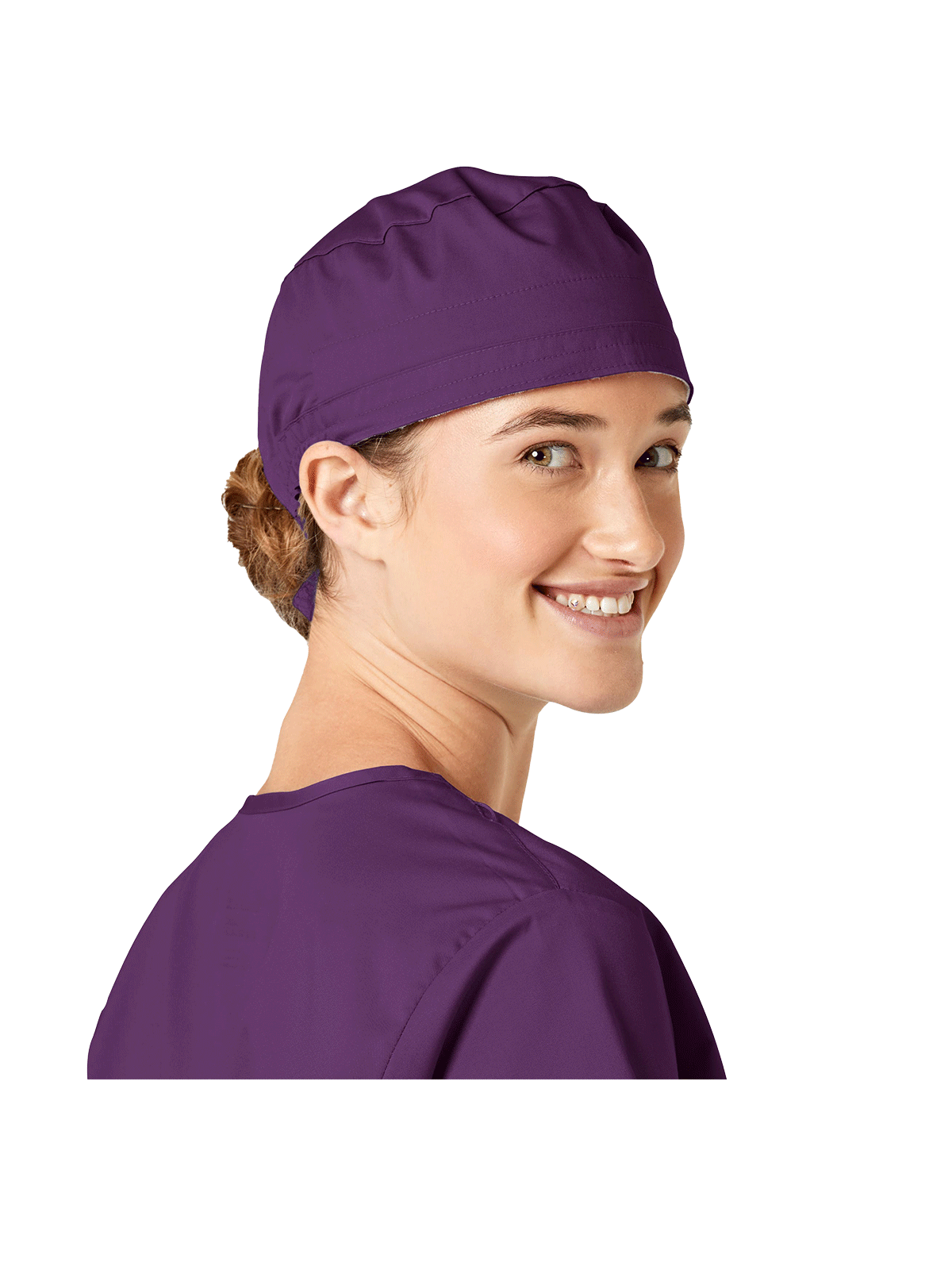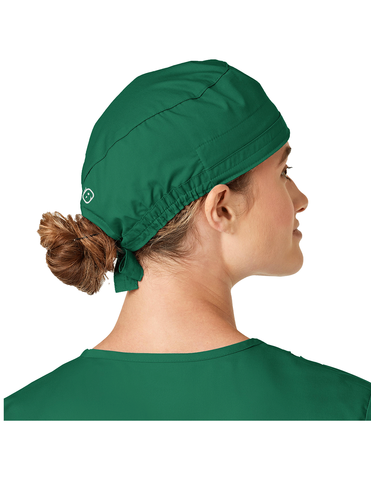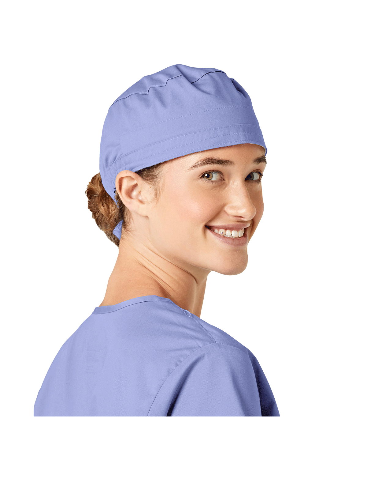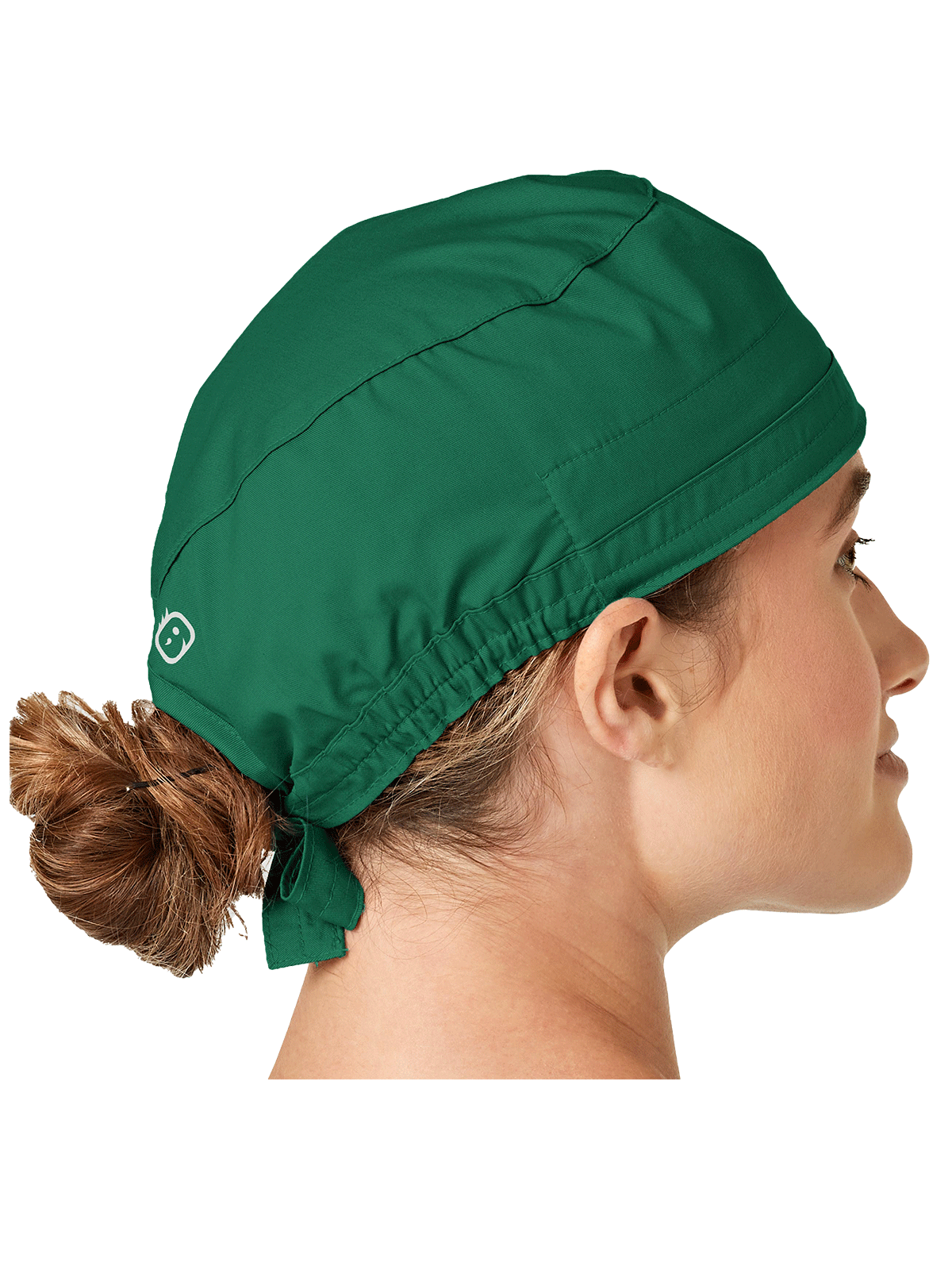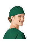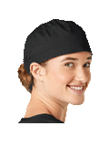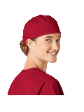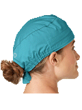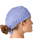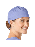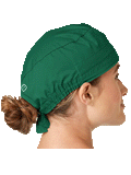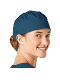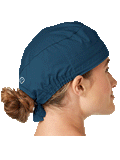 This roomy bouffant scrubs hat features buttons by ears to comfortably hold a protective face mask in place. (Mask sold separately.) Hat also includes front pleats with enough fullness for complete hair coverage and terry cloth sweatband for comfort. Back...