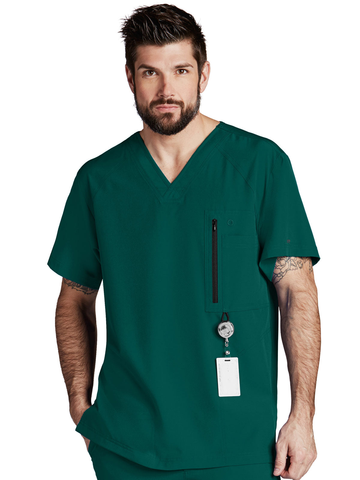 When your job is a marathon, rely on this men's Barco One scrub top to keep you feeling cool, dry and confident. Four-way stretch fabric wicks moisture and floats above your skin with a super lightweight feel. Raglan sleeves give you room to reach and stretch. A zip pocket on the chest secures your phone or PDA.