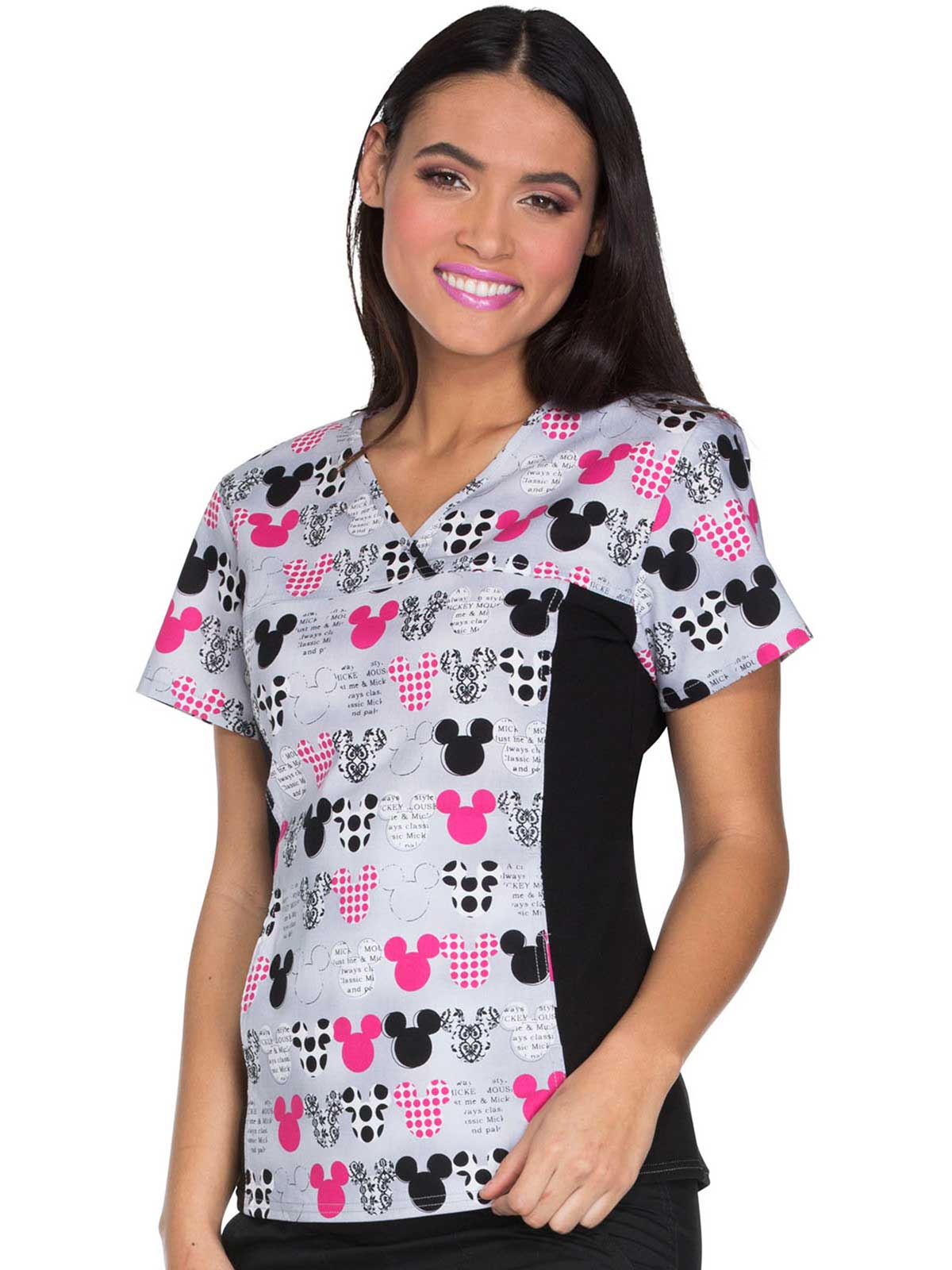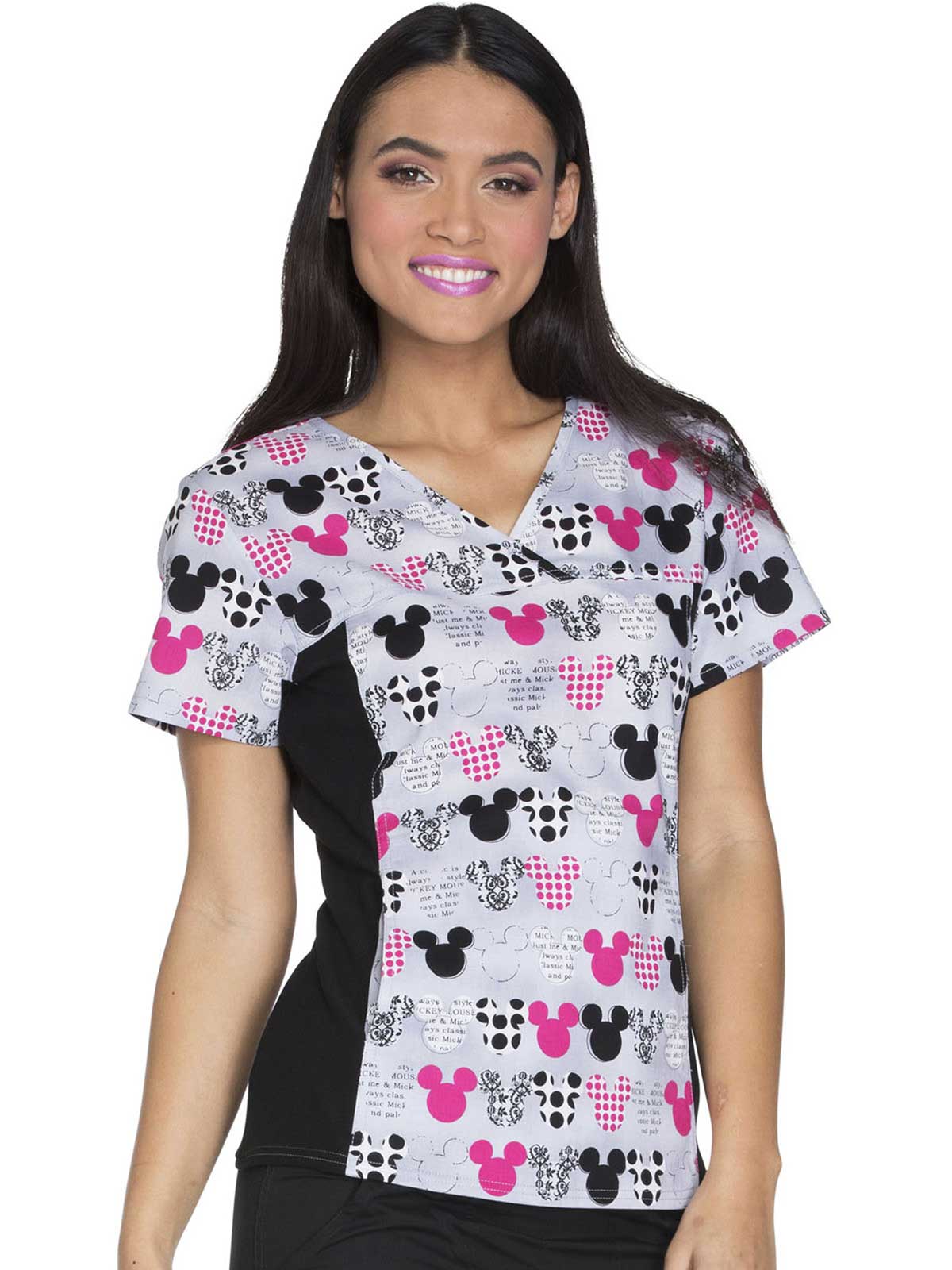 This Modern Classic fit, innovative top features stretch side panels in contrast knit which shapes and slims the body! Also featured is a V-neckline, front and back yoke, and two hidden pockets! A Tooniforms print is featured on this Flexibles silhouette.