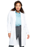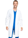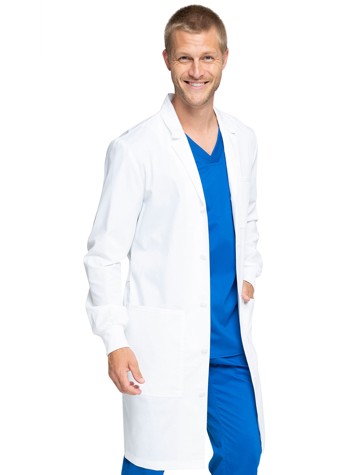 This Unisex Modern fit 40" lab coat has a notched collar, five button closure and an interior locker loop. There are three pockets: a chest pocket and two front patch pockets with side access slits. Rib-knit cuffs complete the look. Center back length: 40"