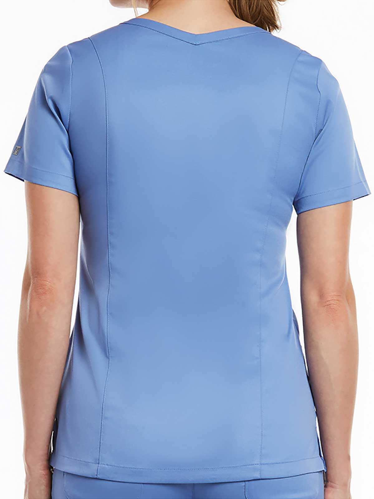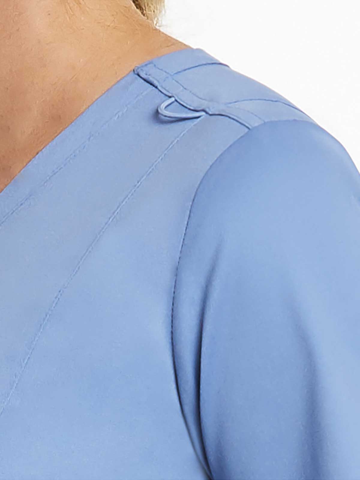 A Unisex Traditional fit V-neck features double needle stitching. The chest pocket features an instrument holder. Also included are two patch pockets, an additional instrument/cell phone pocket on right side, back yoke and side vents. Center back length: 28" Unisex...