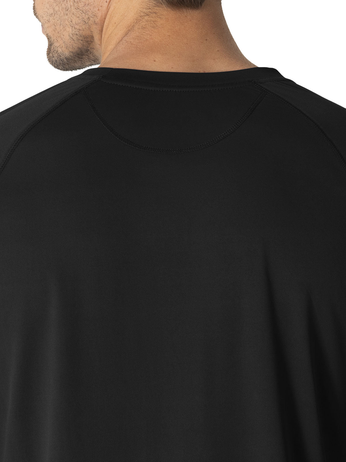 - Feature 2: Set in raglan style sleeves add to the comfort but bring an athletic styling to this performance tee and the seamless underarm panel construction for full range of motion and chafe-free comfort