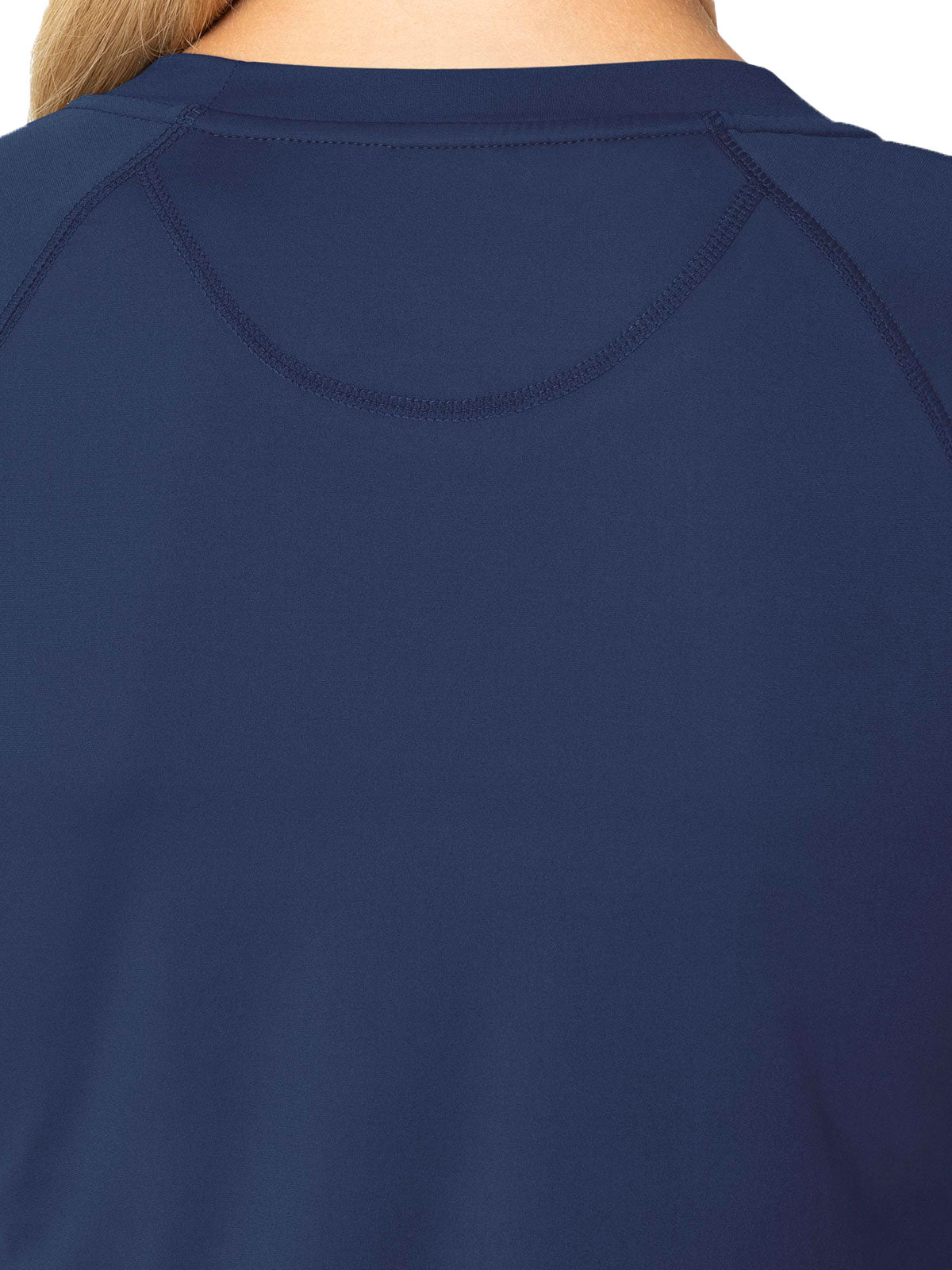 - Feature 2: Set in raglan style sleeves add to the comfort but bring an athletic styling to this performance tee and the seamless underarm panel construction for full range of motion and chafe-free comfort
