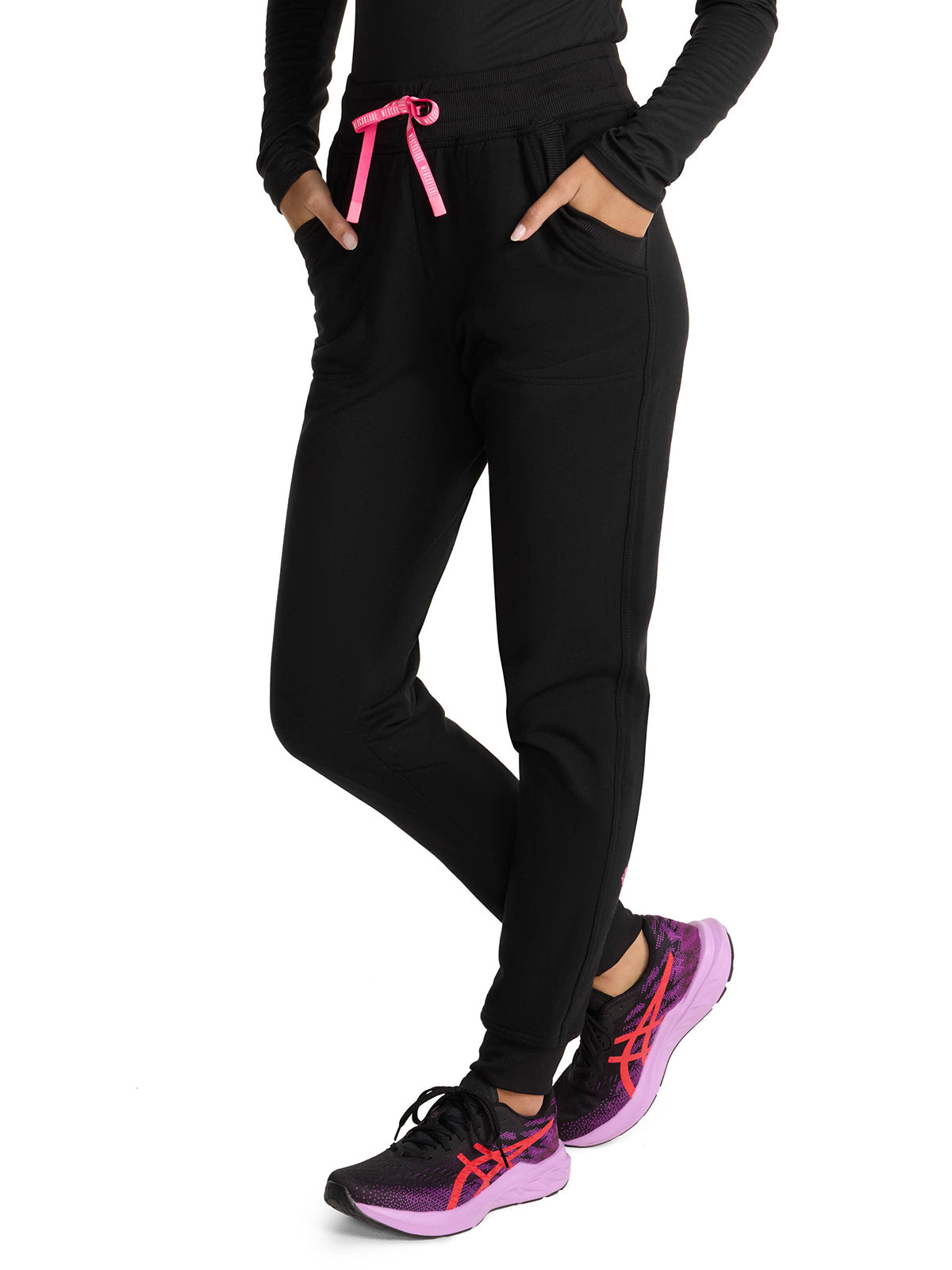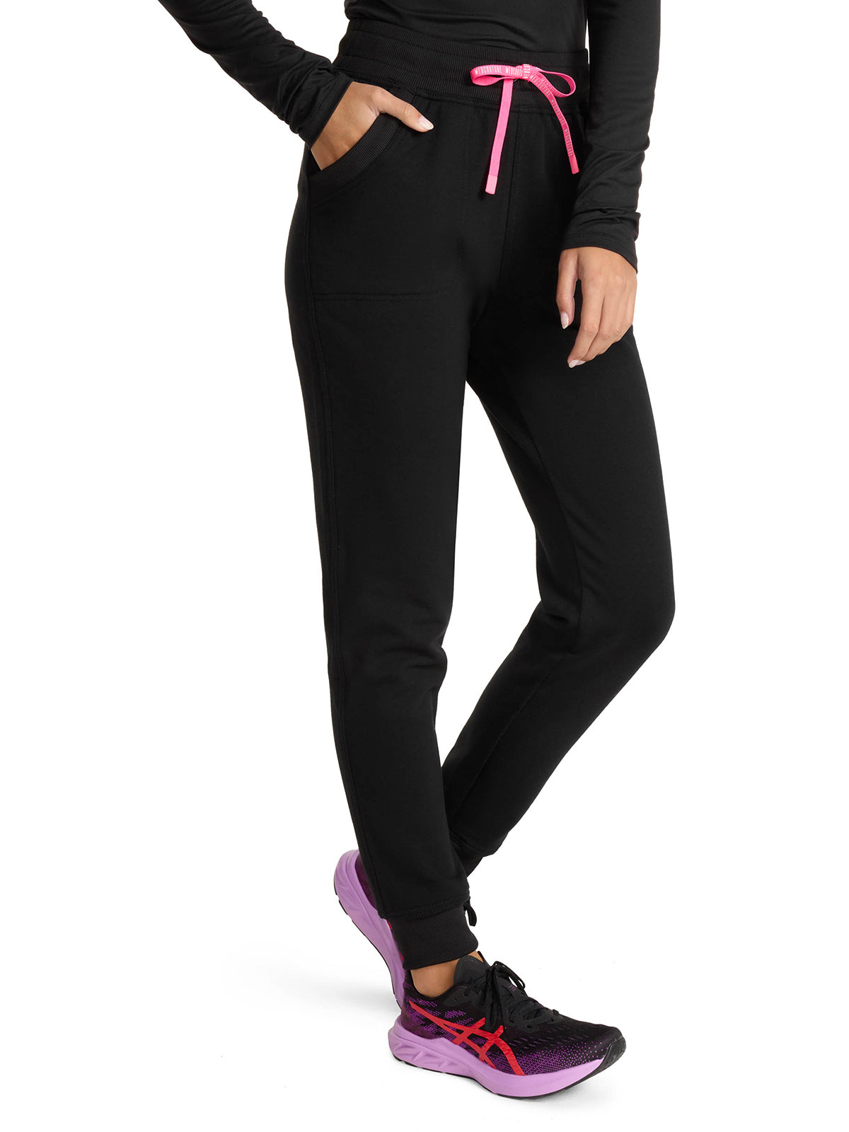Comfort meets style with this cozy Fleece Natural Rise Jogger. The elastic reinforced rib-knit waistband features an adjustable pink logo drawstring while a pink logo locker loop on the back waist offers a quick storage option. The two front pockets and cuffs boast tonal rib-knit detail. Look for the matching Fleece Zip Front Logo Hoodie (sold separately) to complete the outfit. Missy fit. Tapered jogger leg, 9 1/2" opening. Inseam: 28 1/2"