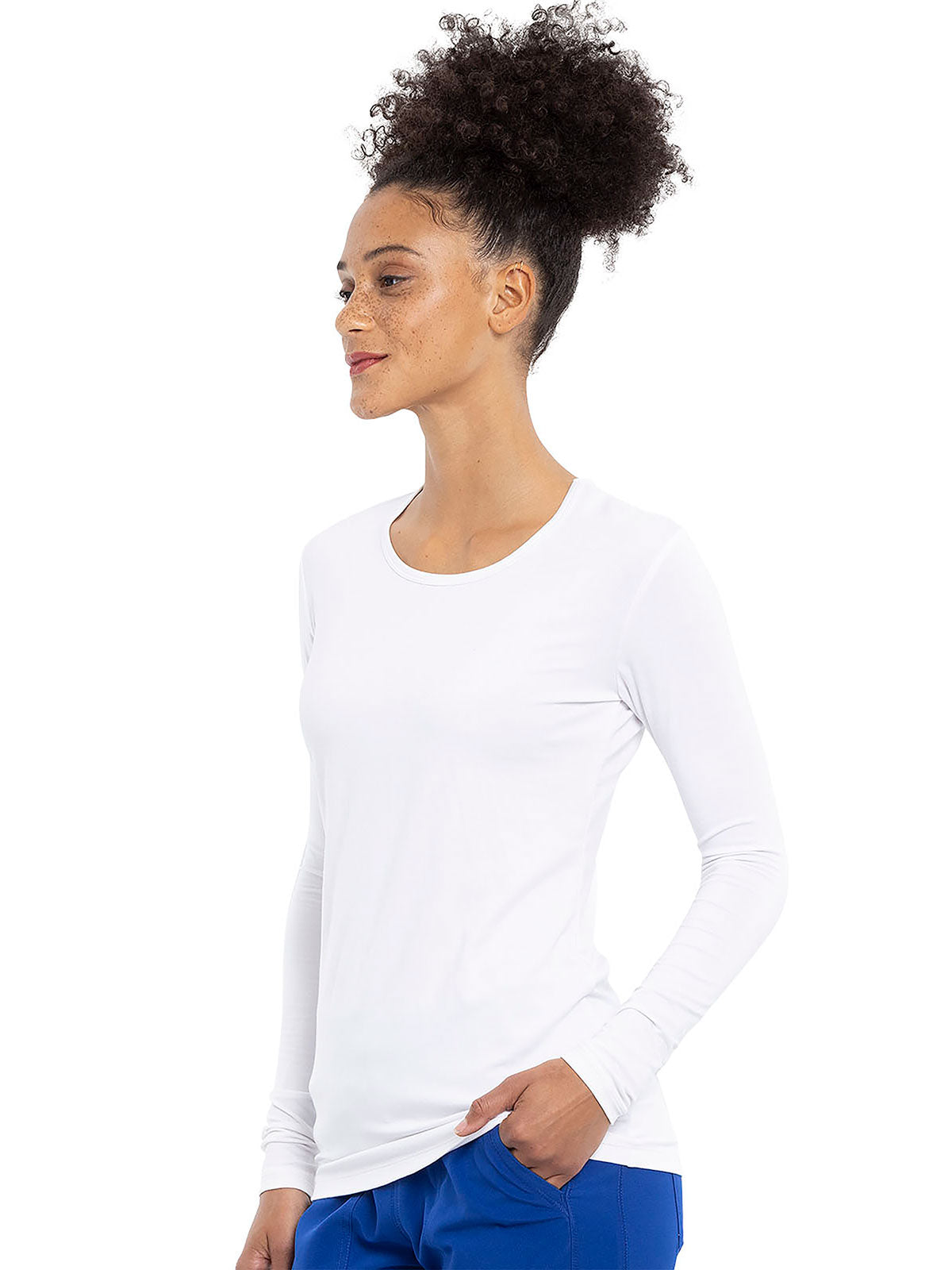 A Modern Classic fit, comfy long sleeve crew neck underscrub knit tee looks great as a layering piece or worn on its own. Center back length: 26"