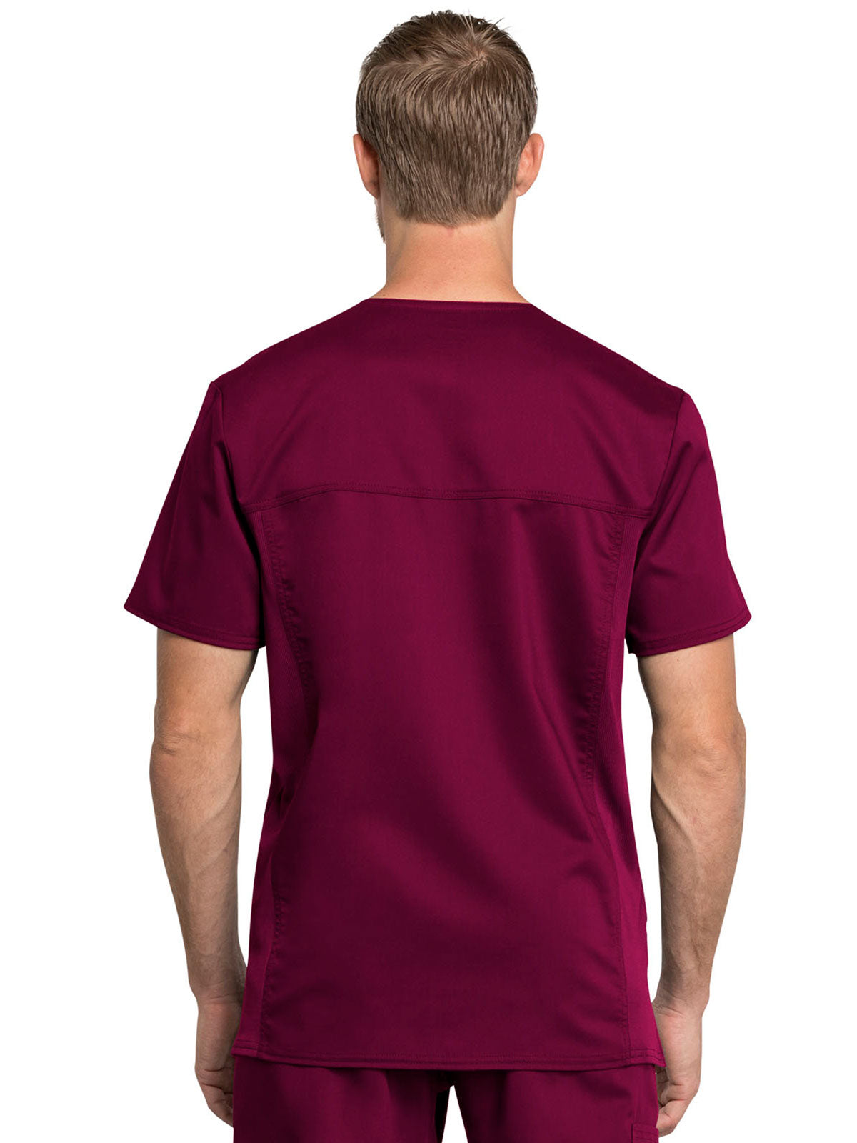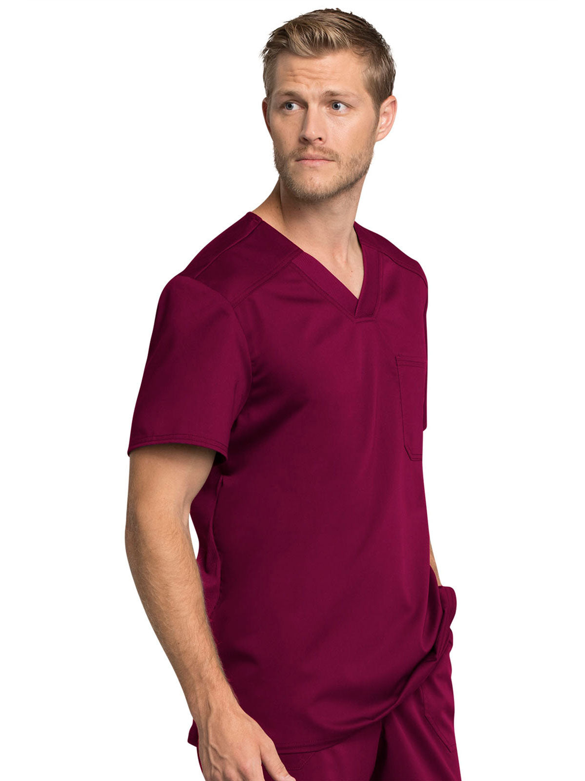 This basic Men's Modern fit V-neck top features a chest pocket with a pencil slot, rib knit detail at the front neck, and side vents for ease of movement. This style looks great tucked in or untucked. Center back length: 29"