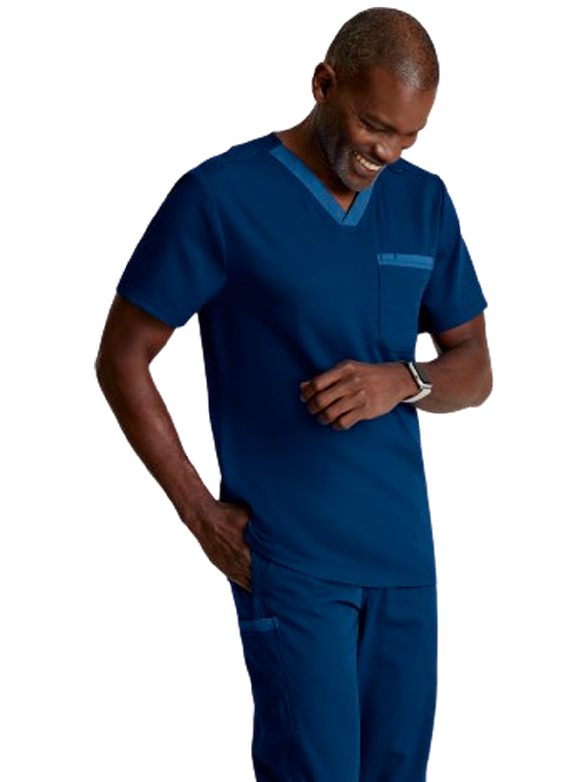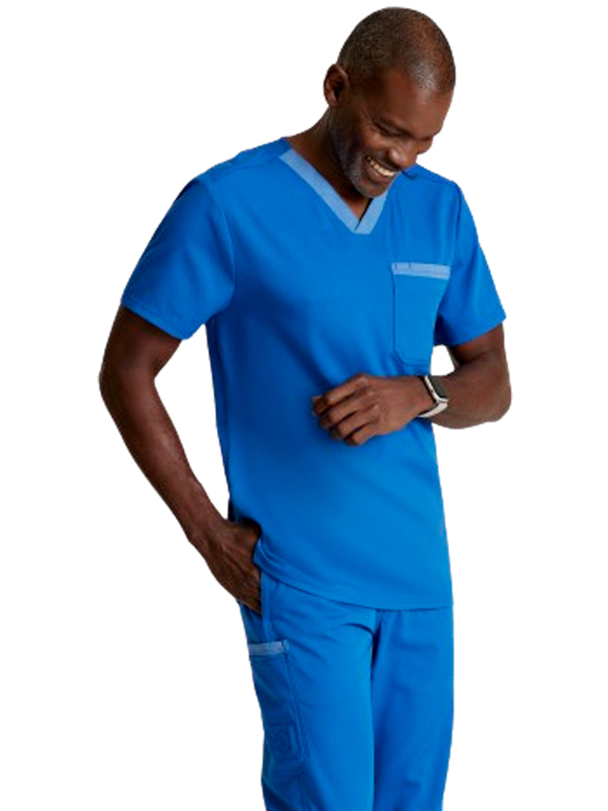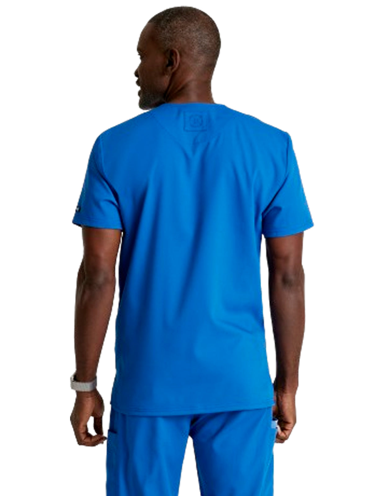 "*V-neck top *One chest pocket with a pen slot *Dyed-to-match functional bungee loop at the shoulder seam *Decorative double stitches by using thick thread *Front shoulder panel and back yoke for added style and shape *Side slits" Cross-over V-neckline Short...