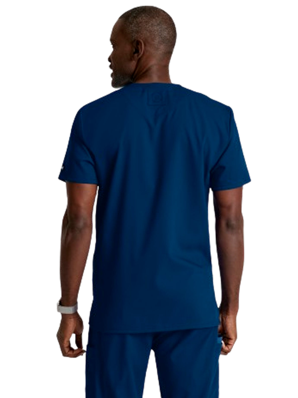 "* Men’s V-neck top * Decorative logo tape at the inner back neckband * Functional contrast utility loop at shoulder seam * One chest pocket * Side vents" Banded v-neckline Single chest pocket Bungee loop at shoulder seam Side vents...
