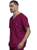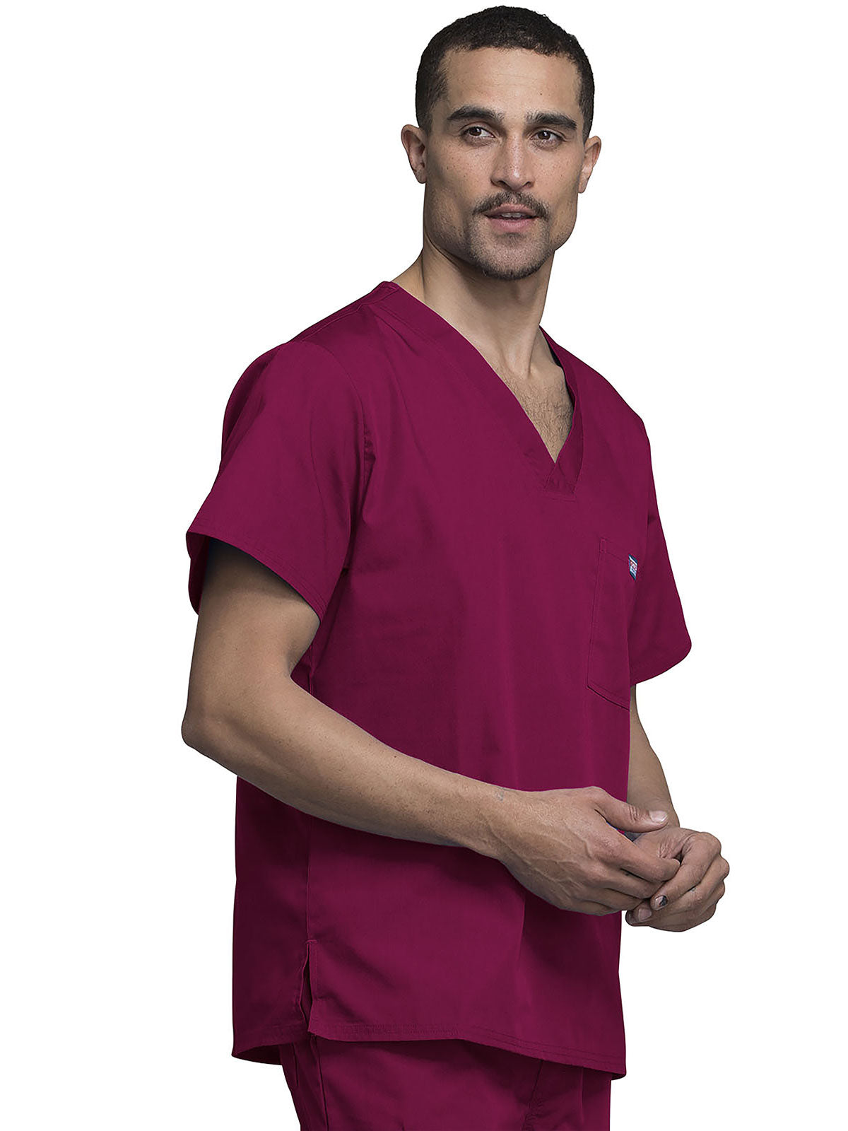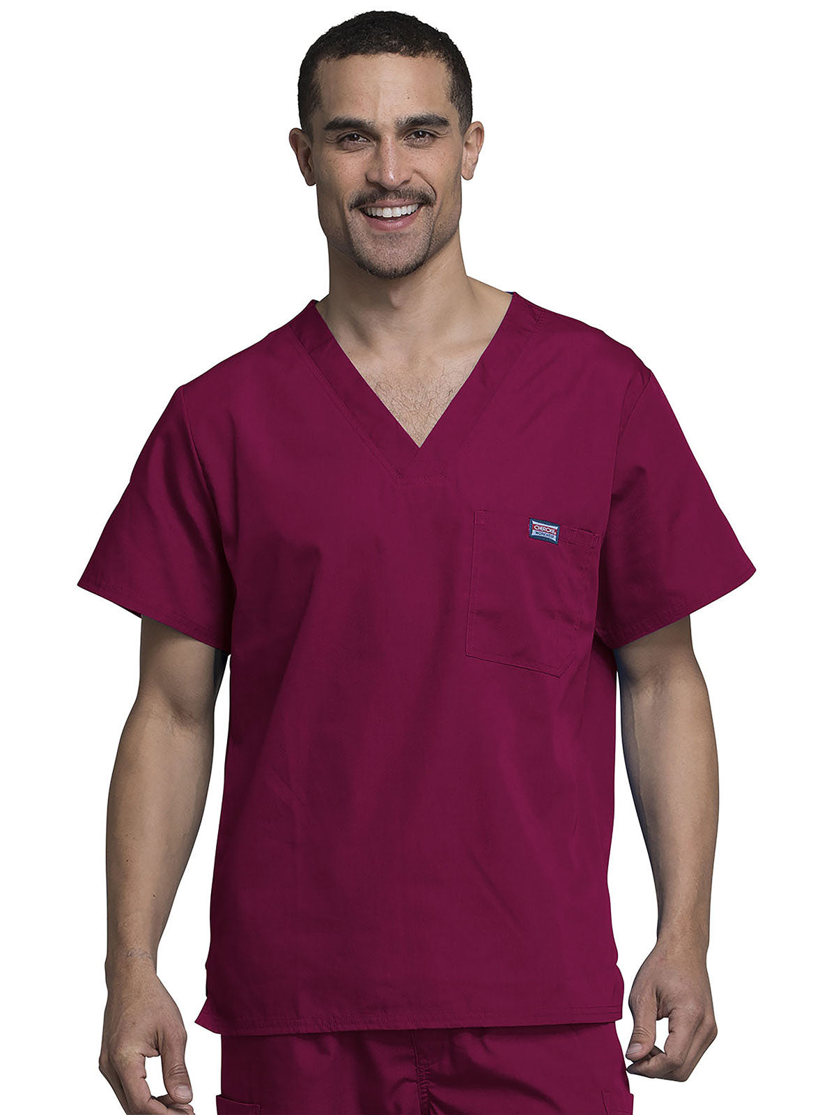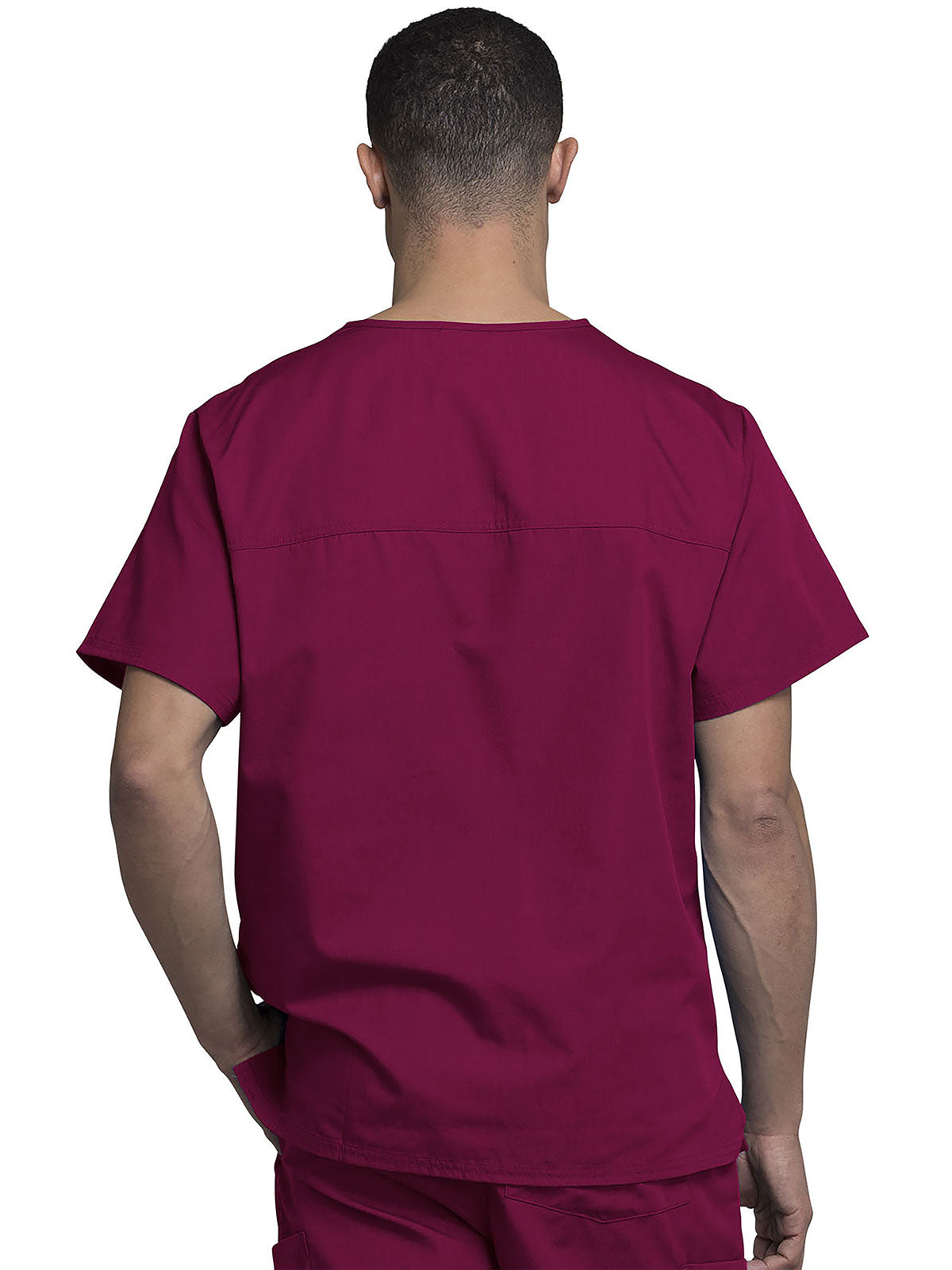 A Unisex Traditional fit V-neck features double needle stitching. The chest pocket features an instrument holder. Also included are two patch pockets, an additional instrument/cell phone pocket on right side, back yoke and side vents. Center back length: 28" Unisex...