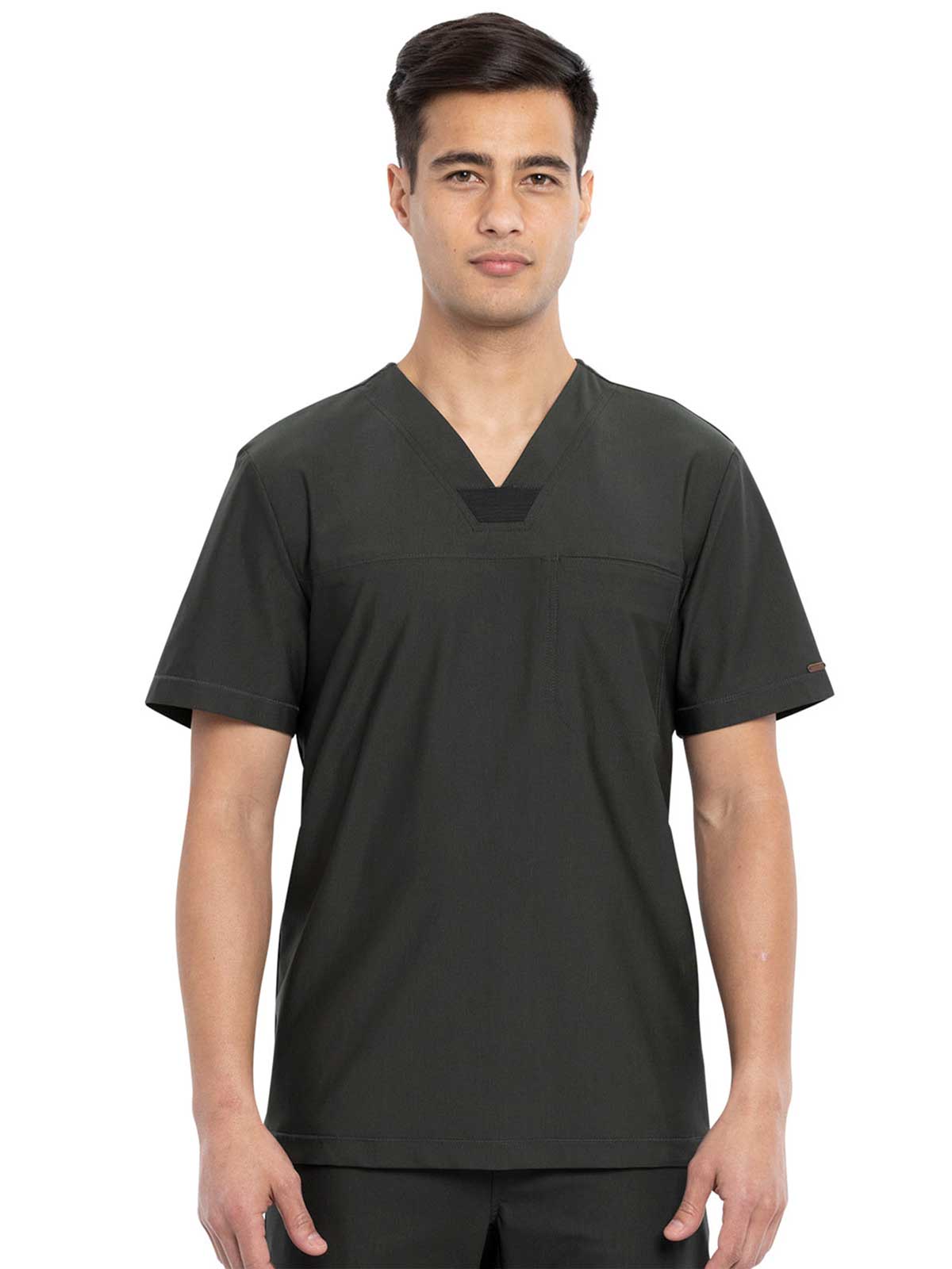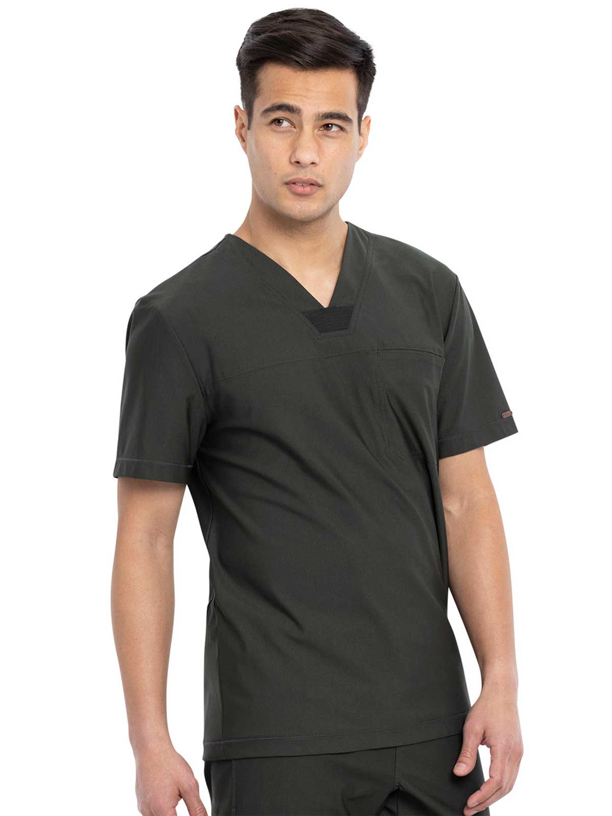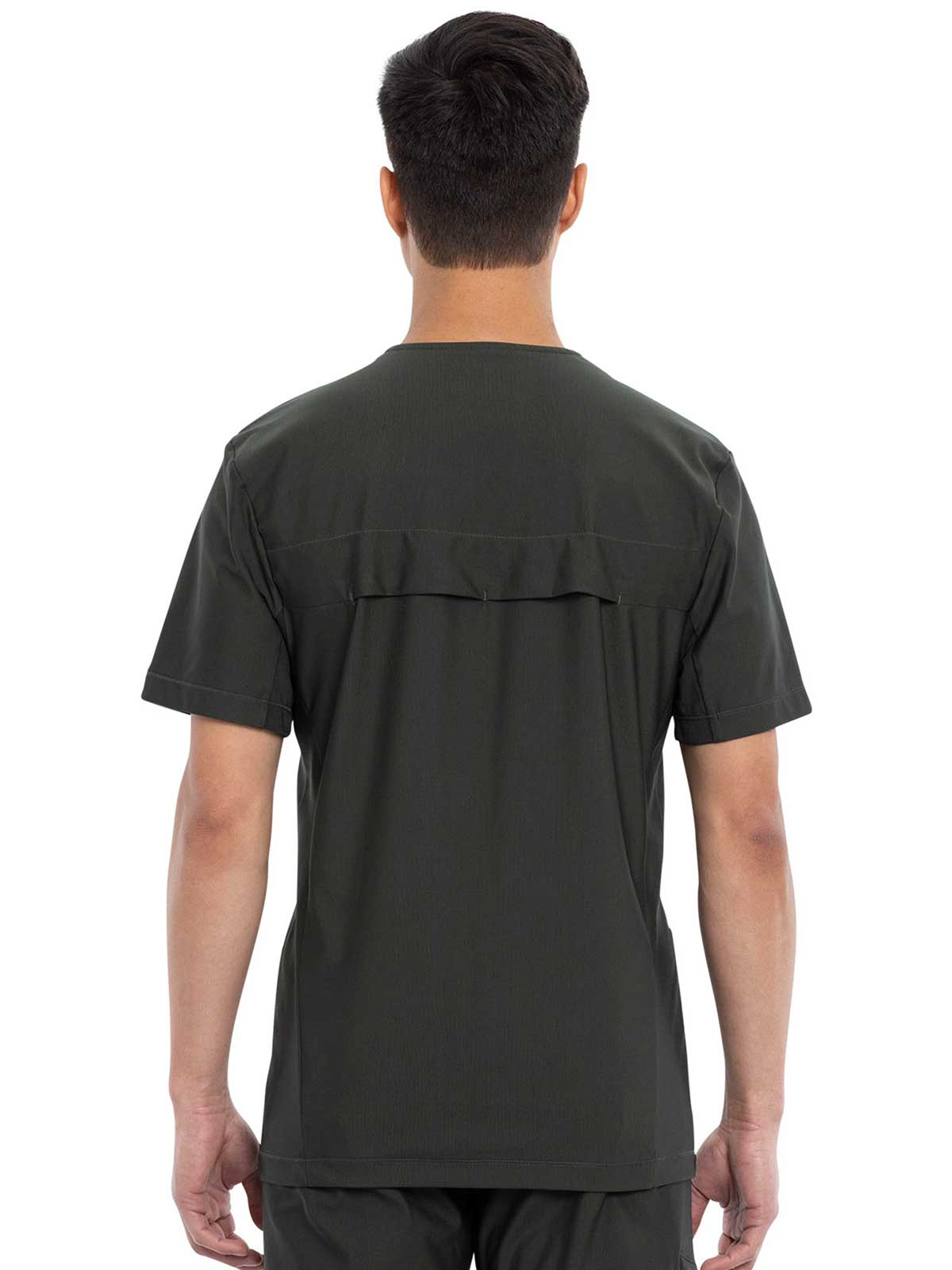 This Men's V-neck top features a front yoke seam and an in-seam chest pocket. It also has form-contouring angled side back seams, a hidden power mesh insert at the back yoke flange for ventilation and underarm power mesh panels for additional comfort and breathability. This style looks great tucked in or untucked. Men's Modern fit. Center Back: 28"