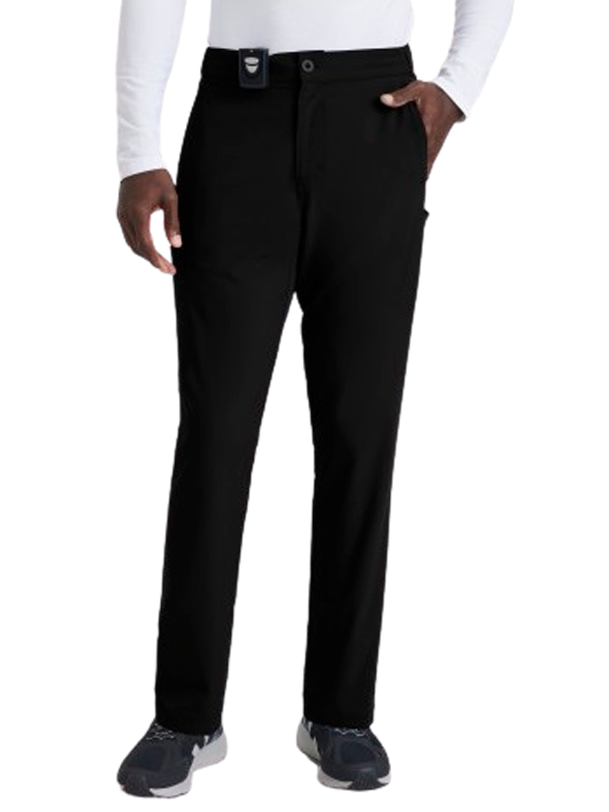 A Men's Modern fit tapered leg pant features an inside functional drawstring, back elastic waistband with rib-knit, five belt loops, a zip fly with button closure, and a hidden inseam gusset for extra ease. Also featured are two front-angled pockets,...