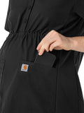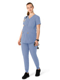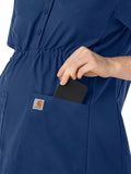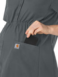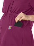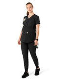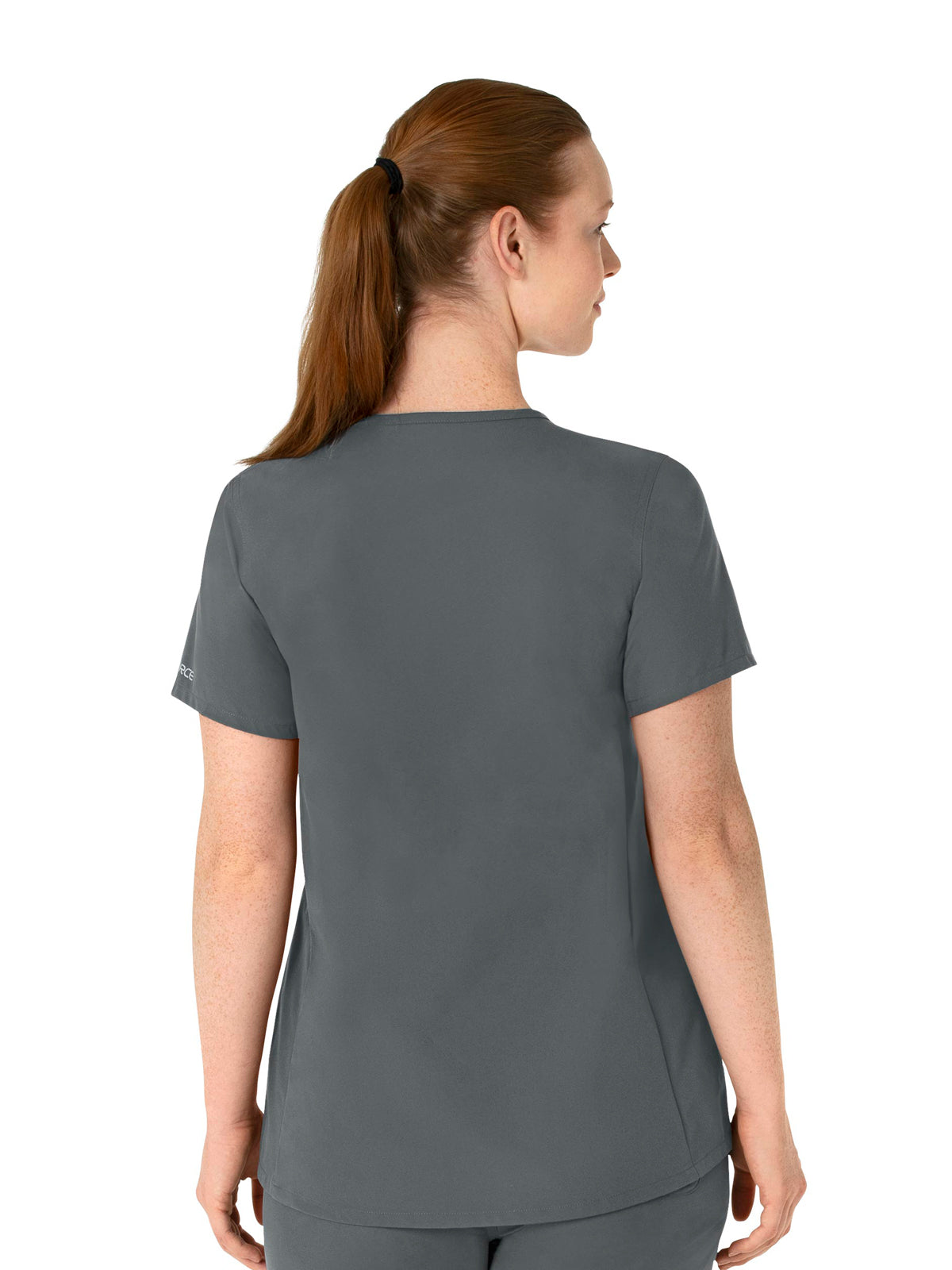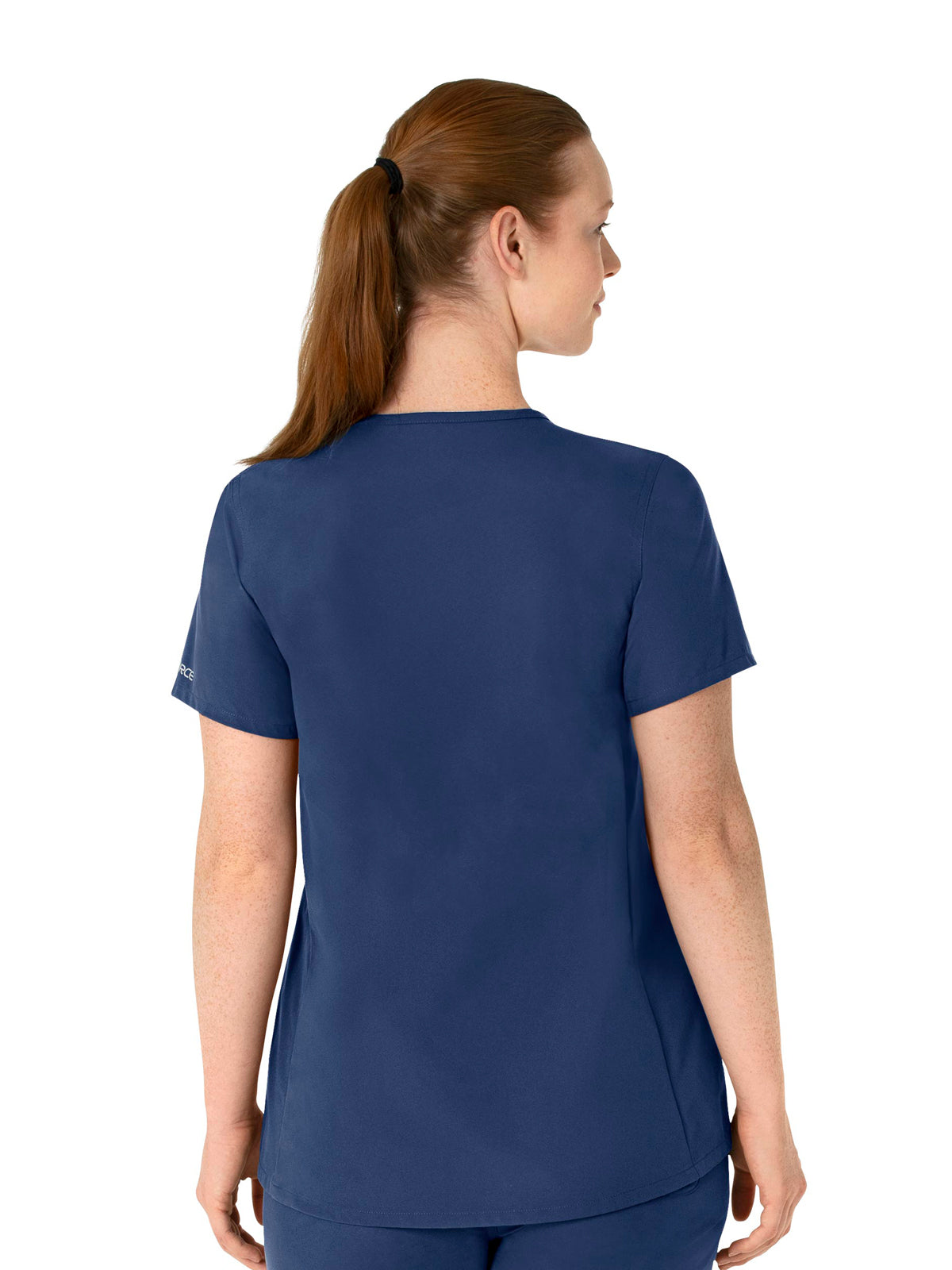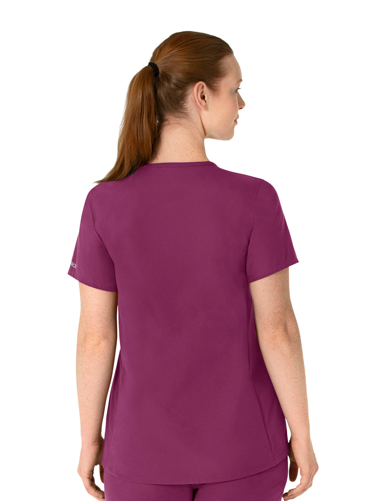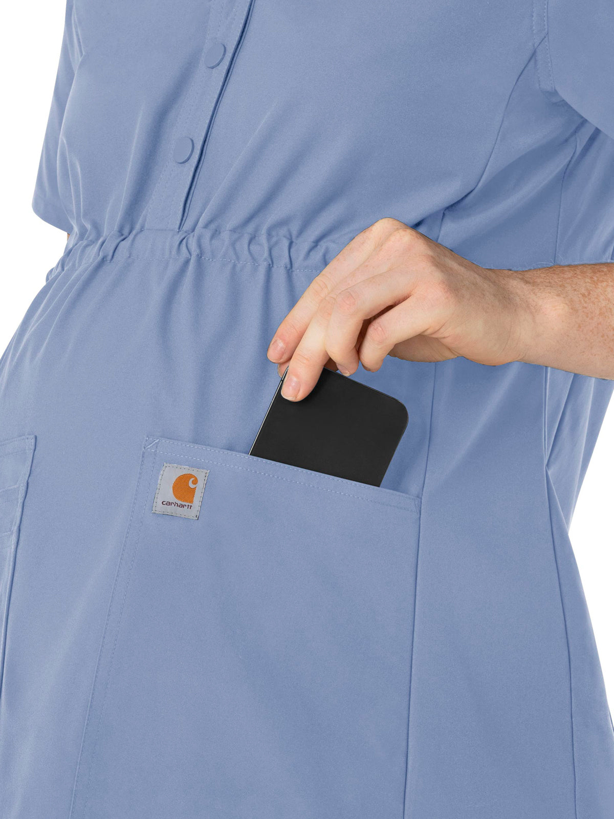 This maternity scrub top simplifies your life so your focus stays sharp and your comfort stays strong while you're expecting. It's designed with all the features you need for practical wear at work, like two oversized top-loading front pockets that take care of larger essentials and daily must-haves. Slip your phone into a smaller mesh pocket built right in, so you always know where it is and have easy access when you need to check in. A scissor pocket on your right keeps that must-have tool in place, and a loop on the shoulder displays your badge while making sure it stays out of your way as you're attending to patients or answering calls. Adjust the elastic on the empire waist to get the fit you want as your belly grows. A curved hem creates a well-rounded silhouette, and a Henley neckline with a snap-button placket finishes the look in tailored style. This scrub top is designed with technologies that help you to perform at your very best. It wicks sweat, dries fast and resists stains, so you stay looking and feeling professional all through your shift.