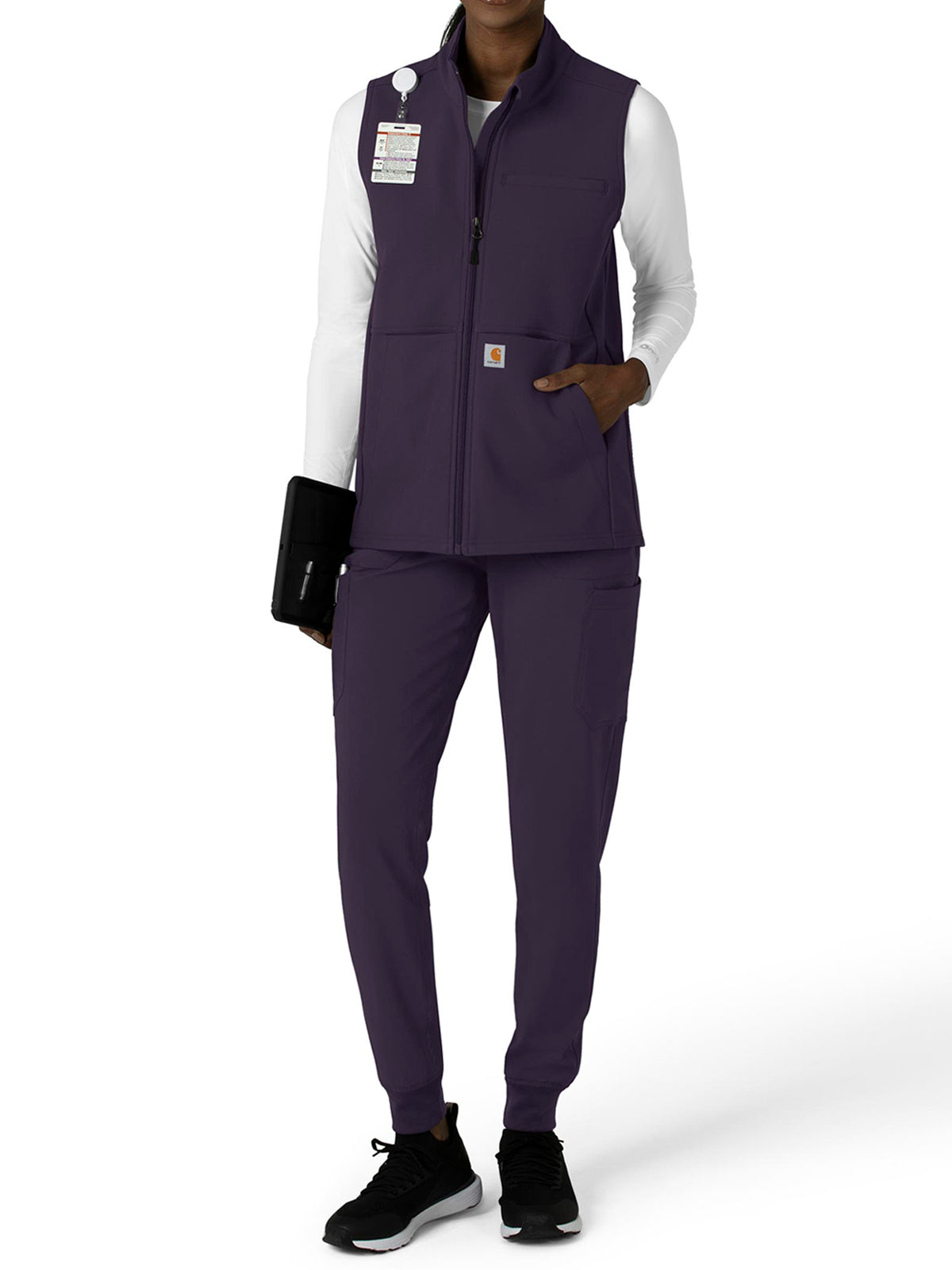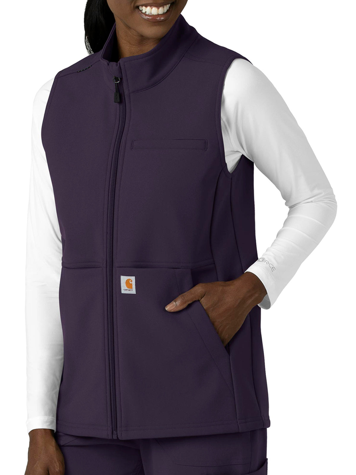Introducing your go-to essential for in-between seasons and chilly weather. Capitalizing on versatility, this women's vest is the perfect layer that surrounds you with cozy comfort in a durable bonded fleece material. The full-zip front lets you add breathability when you want it and more warmth when you don't. Your badge will stay on full display thanks to a loop at the shoulder. A zip-shut chest pocket makes sure smaller items stay in place, while deep patch pockets on the front offer a spacious place to hold essentials. An internal pocket is perfect for things you want to keep out of the way, like your phone or your glasses. The silhouette is finished with a curve in the back, extending the hem slightly for confident coverage. Durable yet lightweight, this vest wicks away moisture to keep you dry and releases soil for a fresh look and feel, shift after shift. It's made with Rugged Flex™ stretch technology that moves with you in any situation. Snag and spill-resistant, it has a soft, broken-in feel that handles your day with ease.