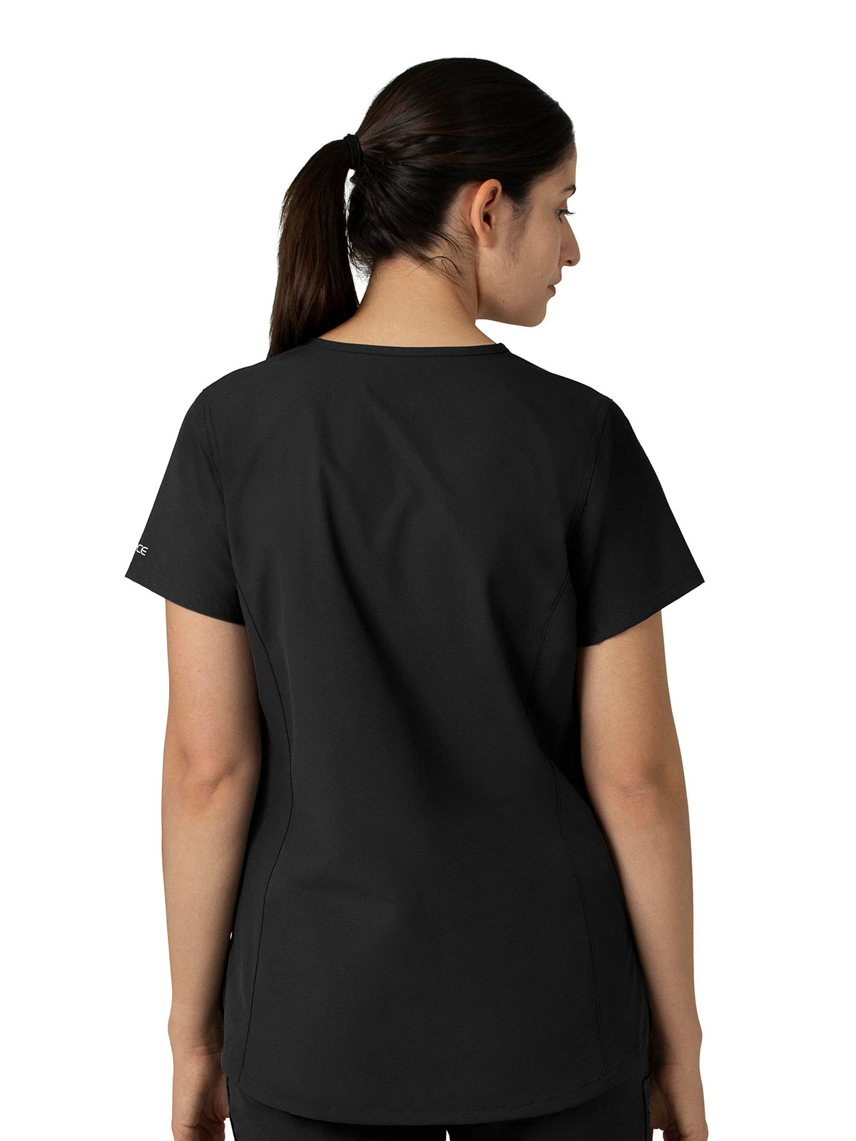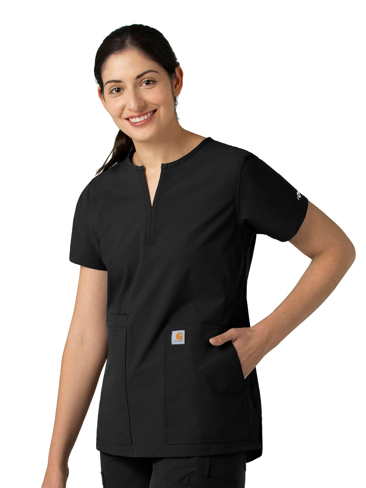 Built to move, the Core by Carhartt Women's Notch Neck Tunic Scrub Top has a flattering, tailored fit with a curved back hem for added coverage. This essential scrub top features Force technology that's quick-drying and moisture-wicking for long-lasting comfort.