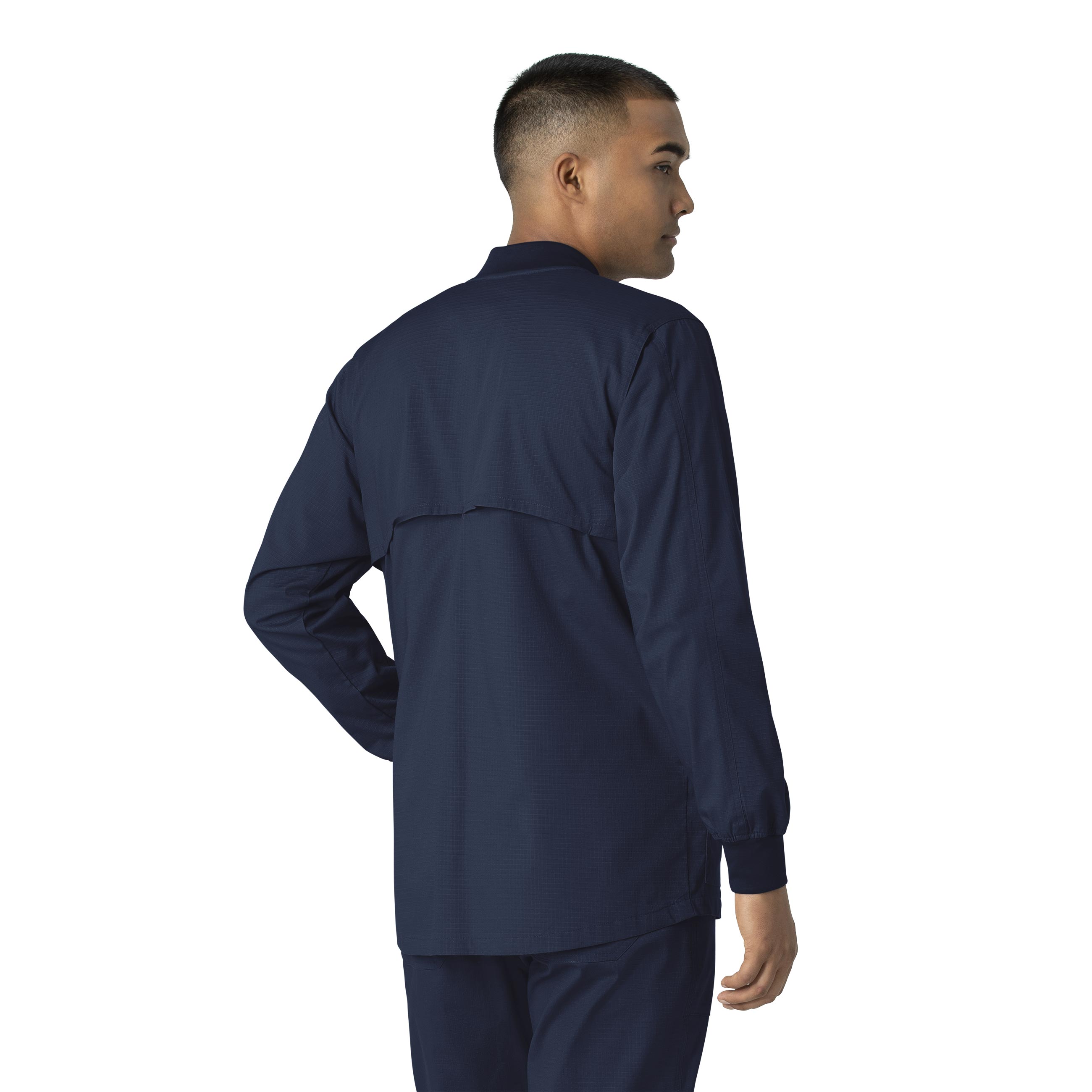- Chest pocket with pen slot on wearer's left