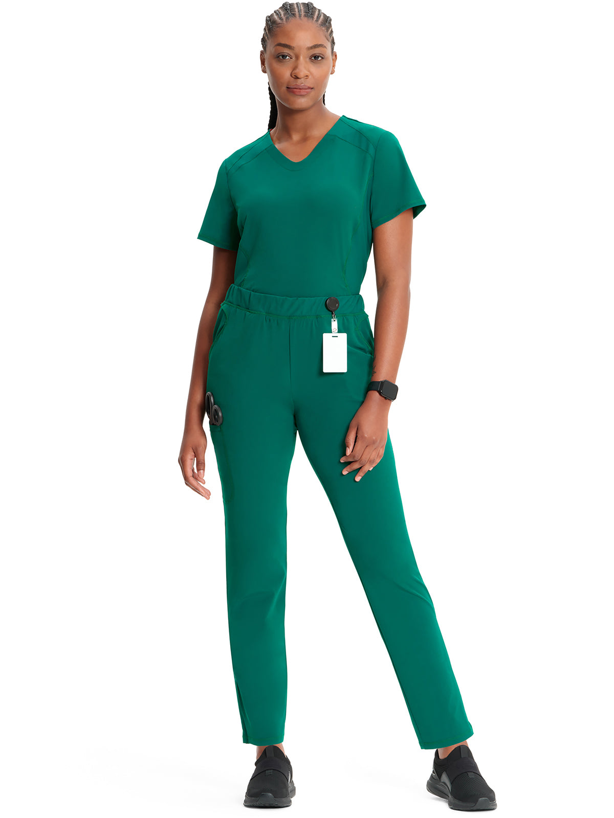 Cherokee Core Stretch scrubs A Modern Classic fit cherokee core stretch scrub V-neck top features two patch pockets (the right with an interior pocket, the left with a pen slot and hidden instrument loop), bungee ID badge loop at the...