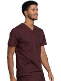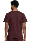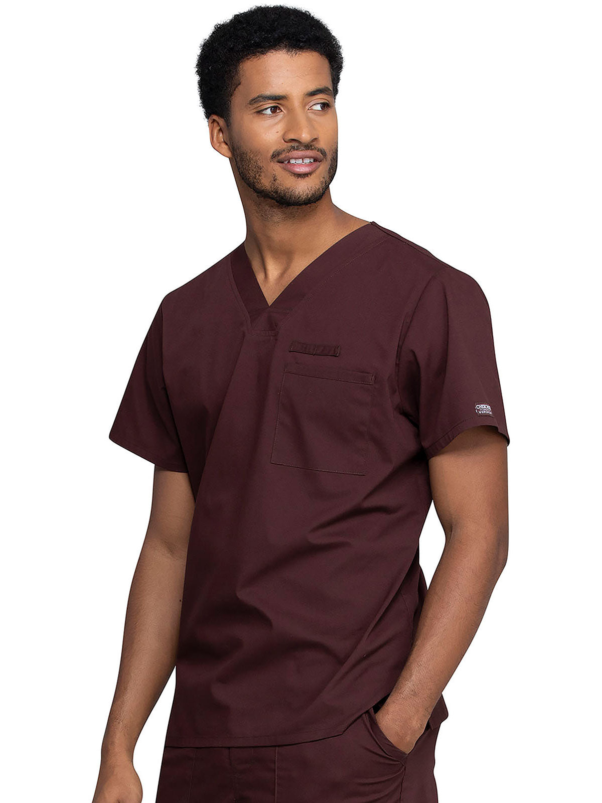 A Men's Traditional fit V-neck top features a chest pocket with instrument loop, a back yoke and side vents. This style looks great tucked in or untucked. Center back length: 28"_x000D_