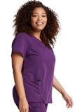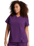 Cherokee workwear core stretch A Modern Classic Cherokee workwear core fit V-neck top features crossover front yokes and patch pockets. The right side pocket has a sectional pocket and I.D. loop. A back yoke, back princess seams, and side vents...