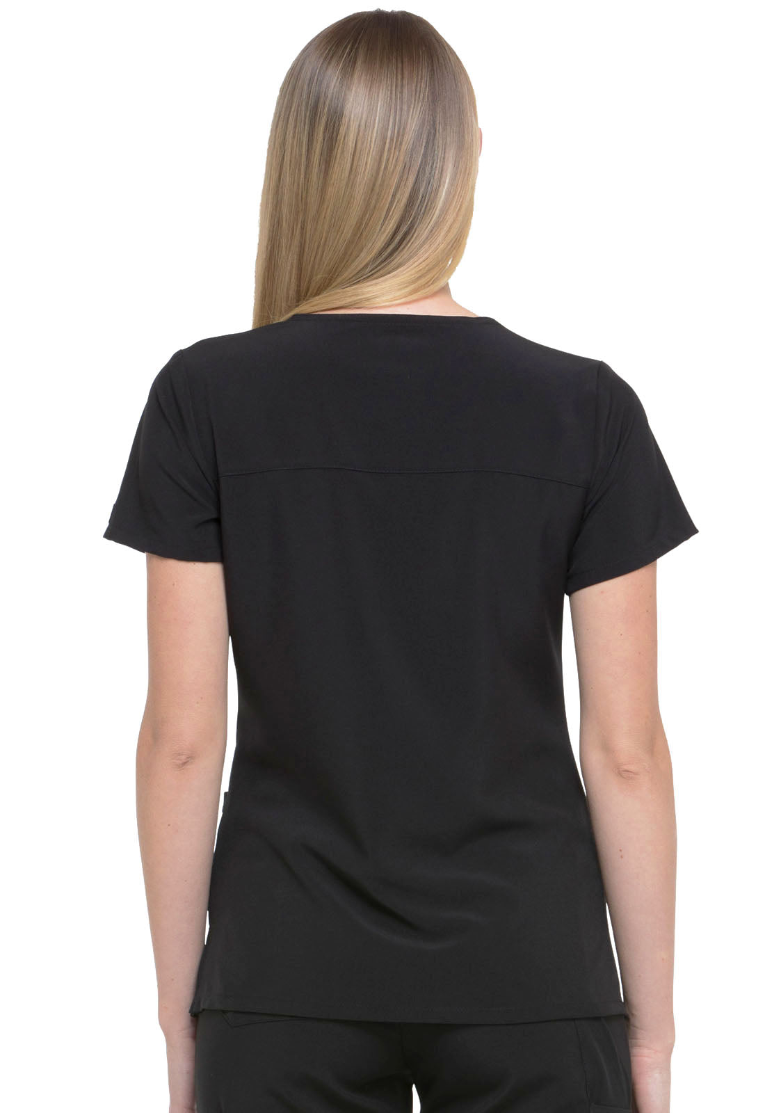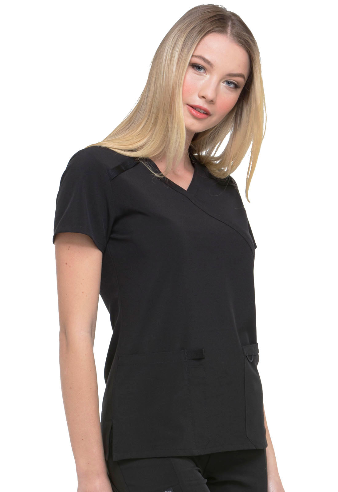 Cherokee workwear core stretch A Modern Classic Cherokee workwear core fit V-neck top features crossover front yokes and patch pockets. The right side pocket has a sectional pocket and I.D. loop. A back yoke, back princess seams, and side vents...