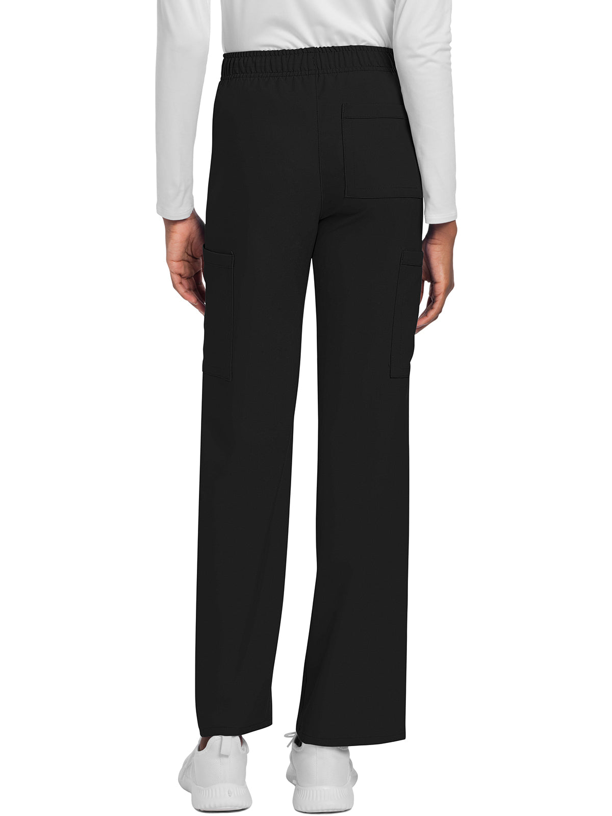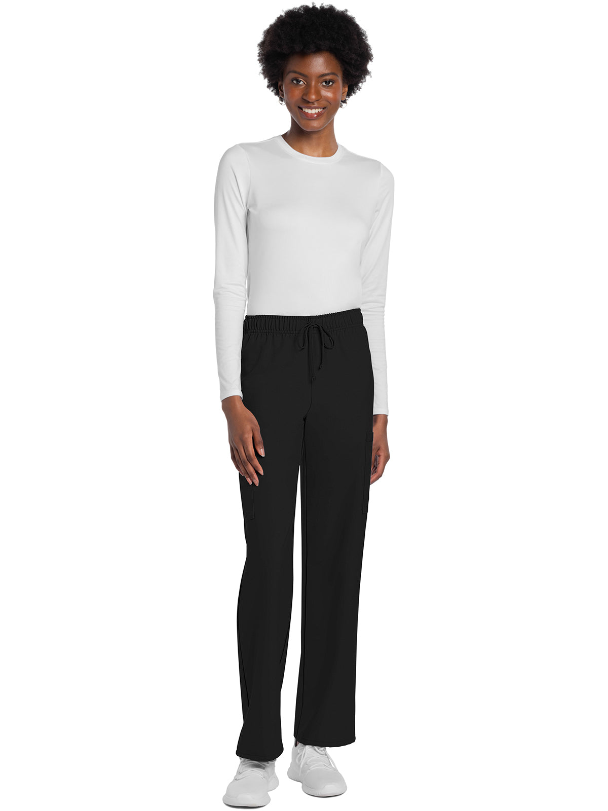 Reliable and comfortable, this Unisex fit drawstring pant has an elastic-reinforced waistband and drawstring. There are three pockets to store work essentials: two cargo patch pockets and one back patch pocket. Reverse hem trim on all pockets. Decorative tonal topstitching for added detailing. This scrub pant offers genderless classic styling. Straight leg, 19 1/2" opening. Inseam: 31"