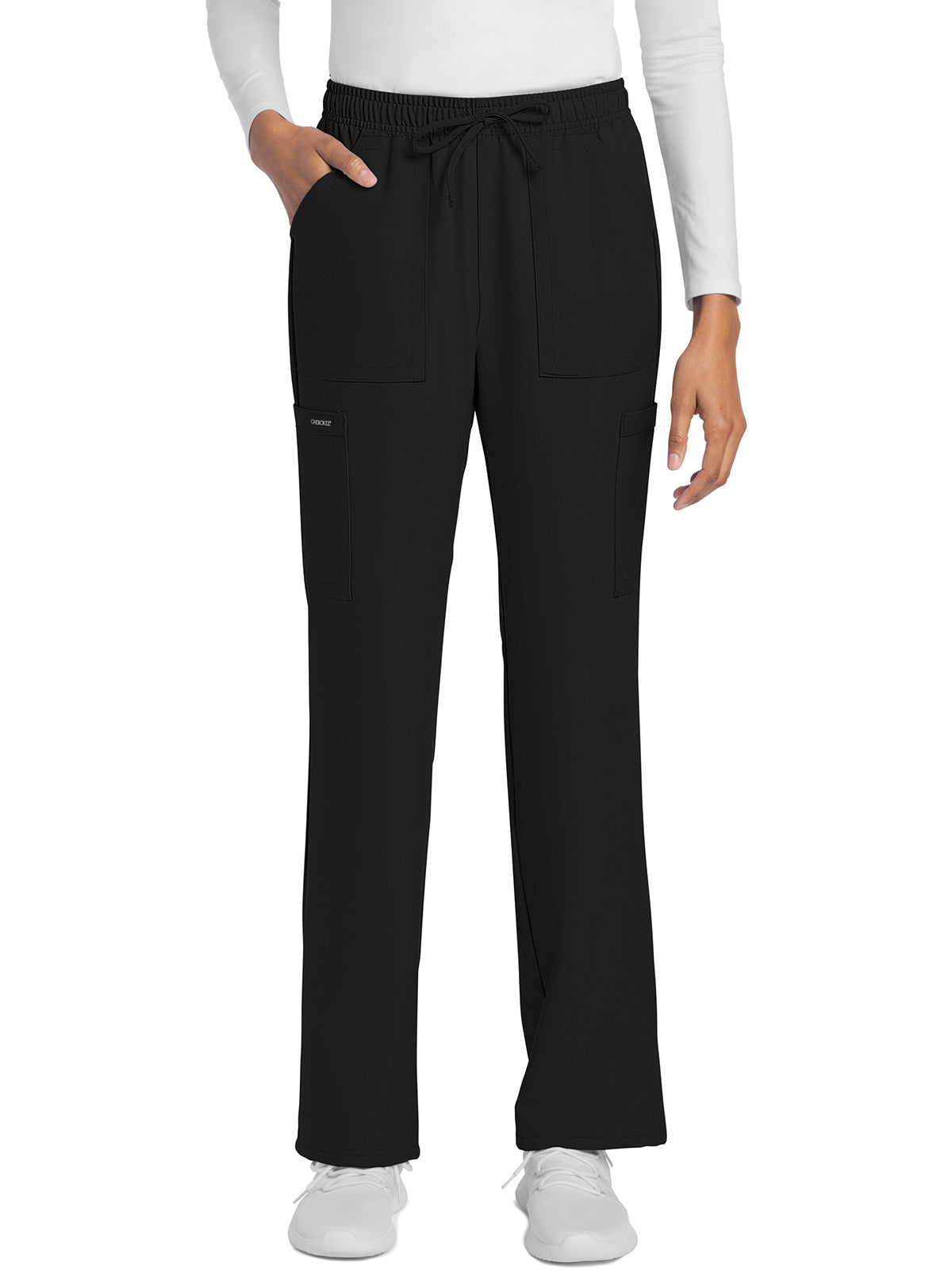 Cherokee Core Stretch scrubs A Modern Classic fit cherokee core stretch scrub V-neck top features two patch pockets (the right with an interior pocket, the left with a pen slot and hidden instrument loop), bungee ID badge loop at the...