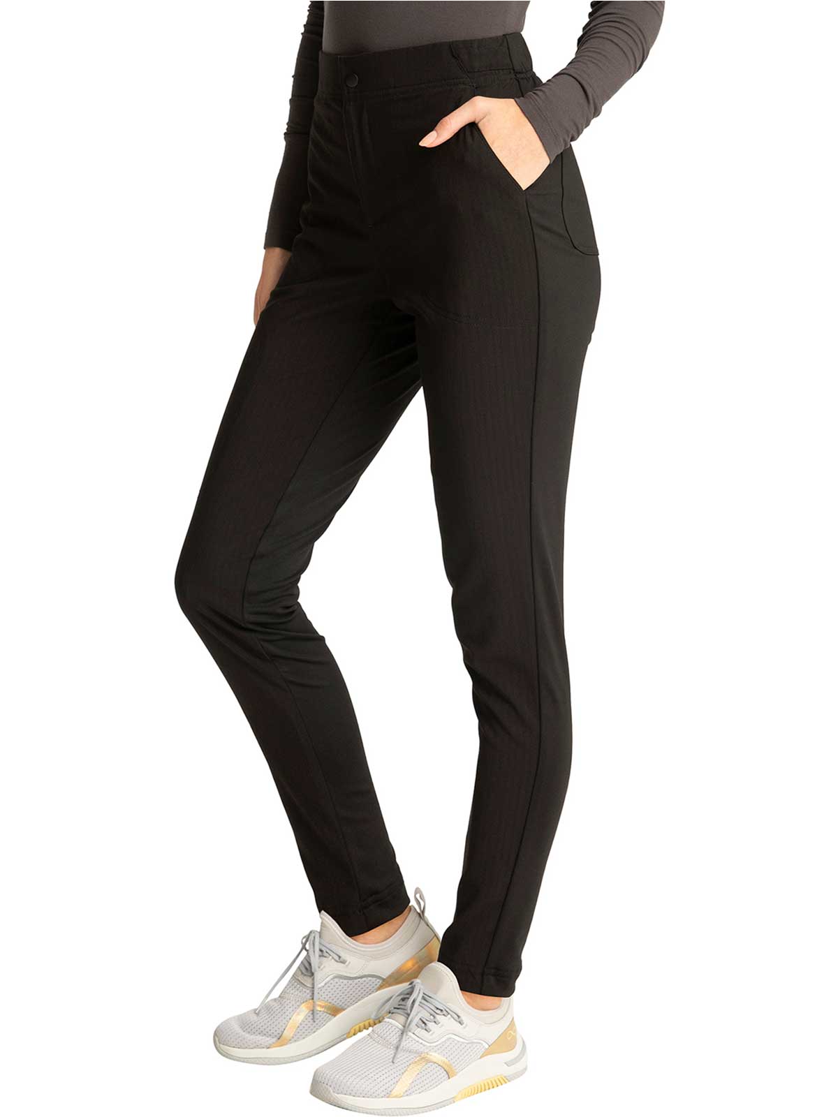 Pull-on styling, a figure-flattering cut, and a knit full back panel makes this mid rise pant a comfortable and elegant addition to your work wardrobe. Additional design details include a drawstring front, two angled front pockets, two angled zip pockets,...