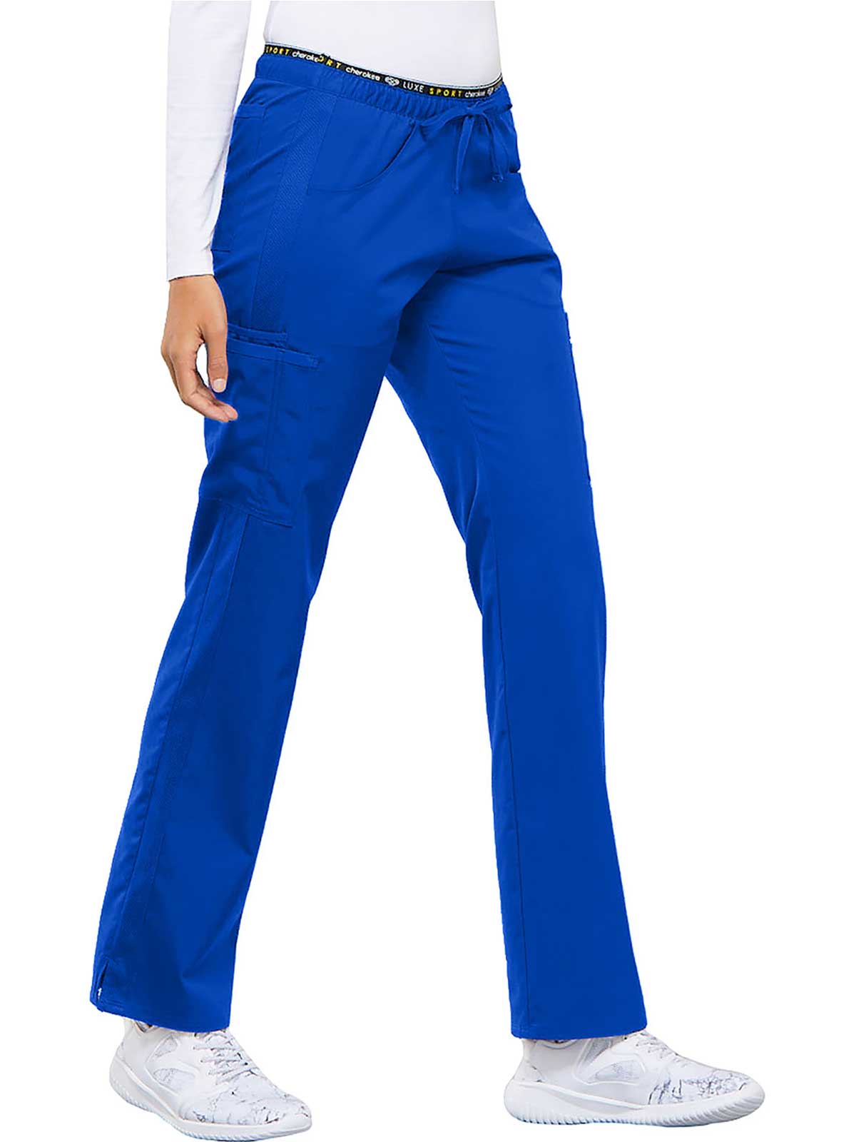 A Contemporary fit, mid rise, straight leg pant features a functional drawstring and logo elastic waistband. Also featured are tonal knit mesh strapping on the side seams, a mesh cell phone pocket, two front pockets, two cargo pockets (the left with a logo charm), back pocket, back leg seams and side vents. Inseam: 34"
