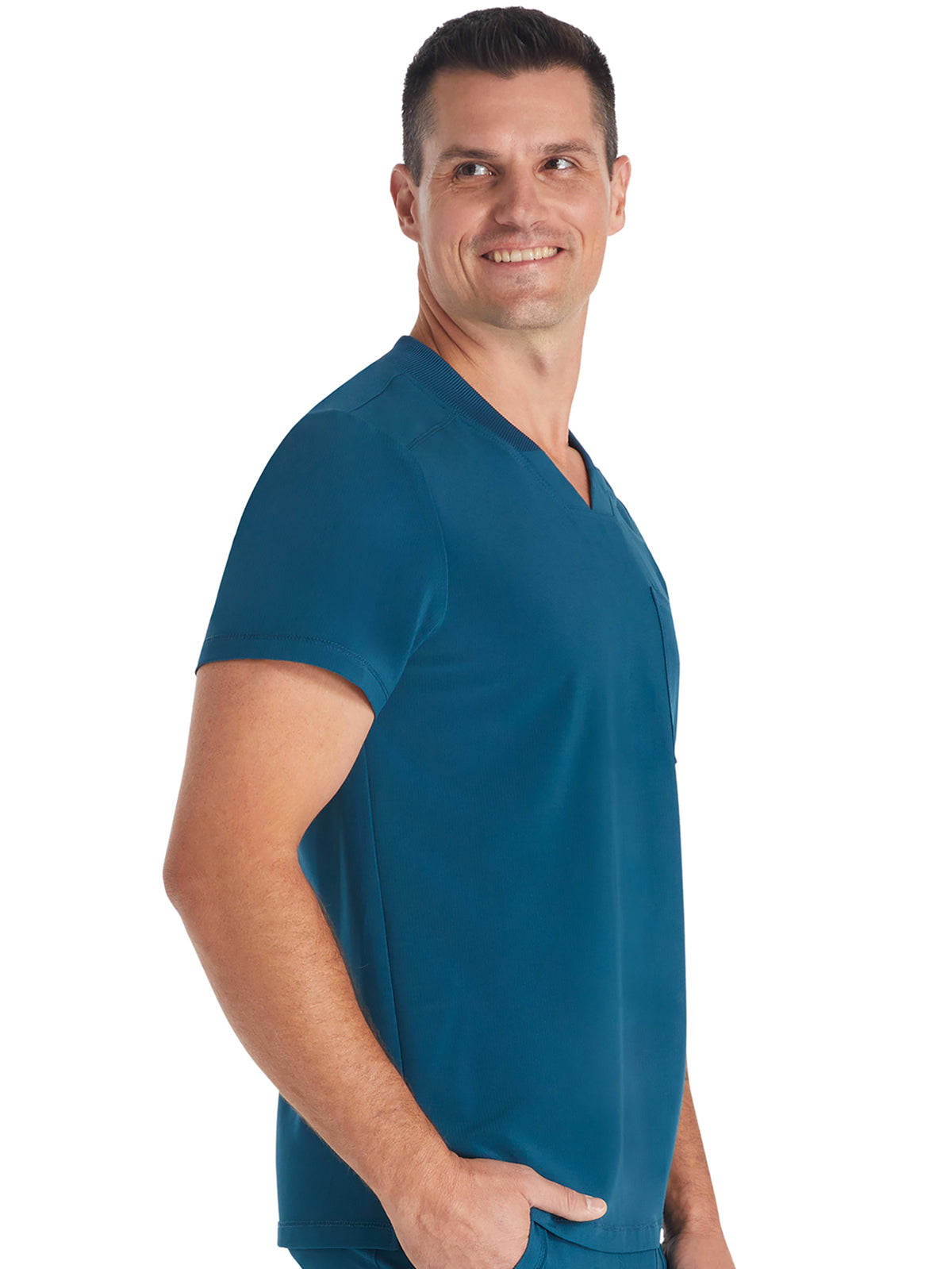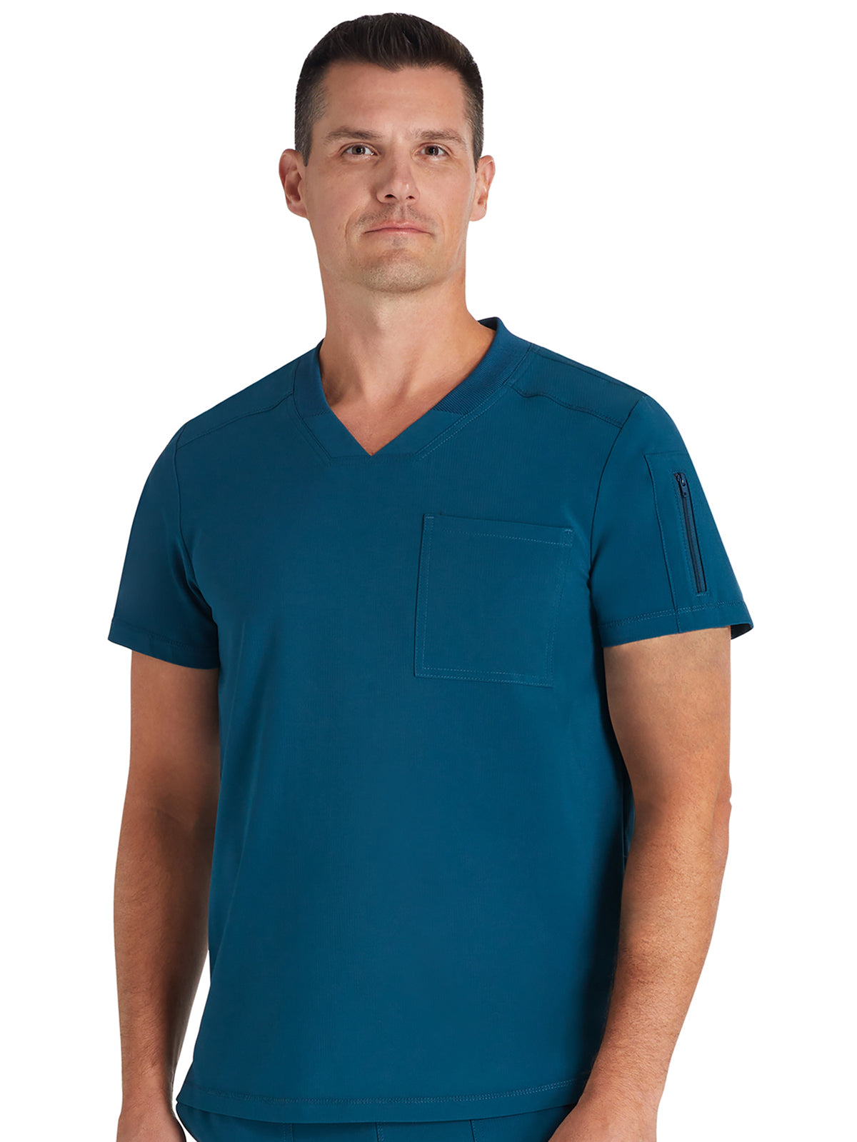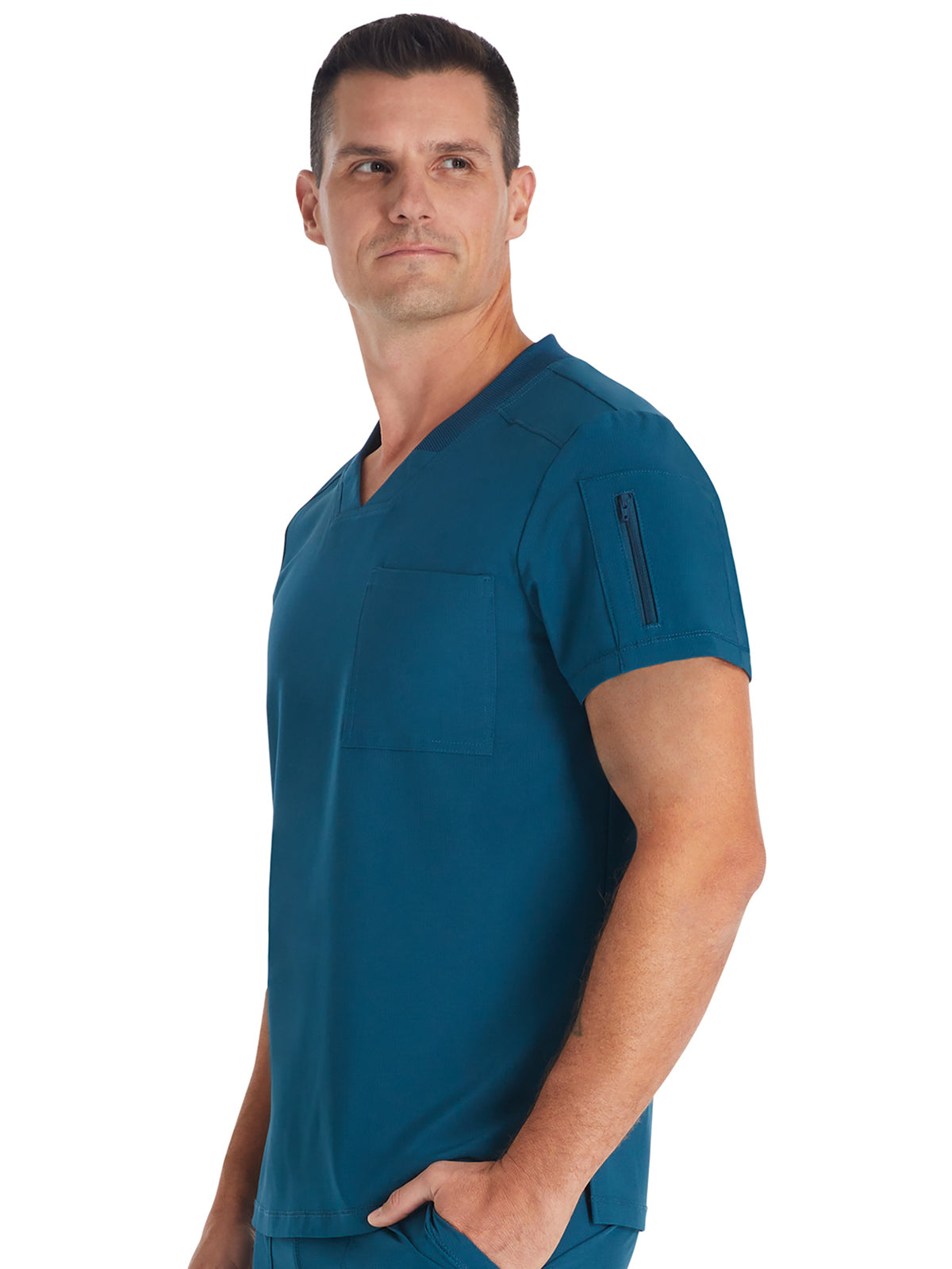 The Cherokee Men's V-Neck Scrub Top takes your professional uniform to the next level with a convenient chest pocket and a zippered sleeve pocket for optimum organization. Plus, it's made from odor-resistant, antimicrobial fabric for long-lasting comfort.