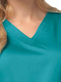 This Contemporary fit stylized V-neck top has a bungee ID badge loop on the right shoulder yoke seam, a notched back neckline and a curved back yoke seam. Other features include front and back princess seams and a rounded hem....