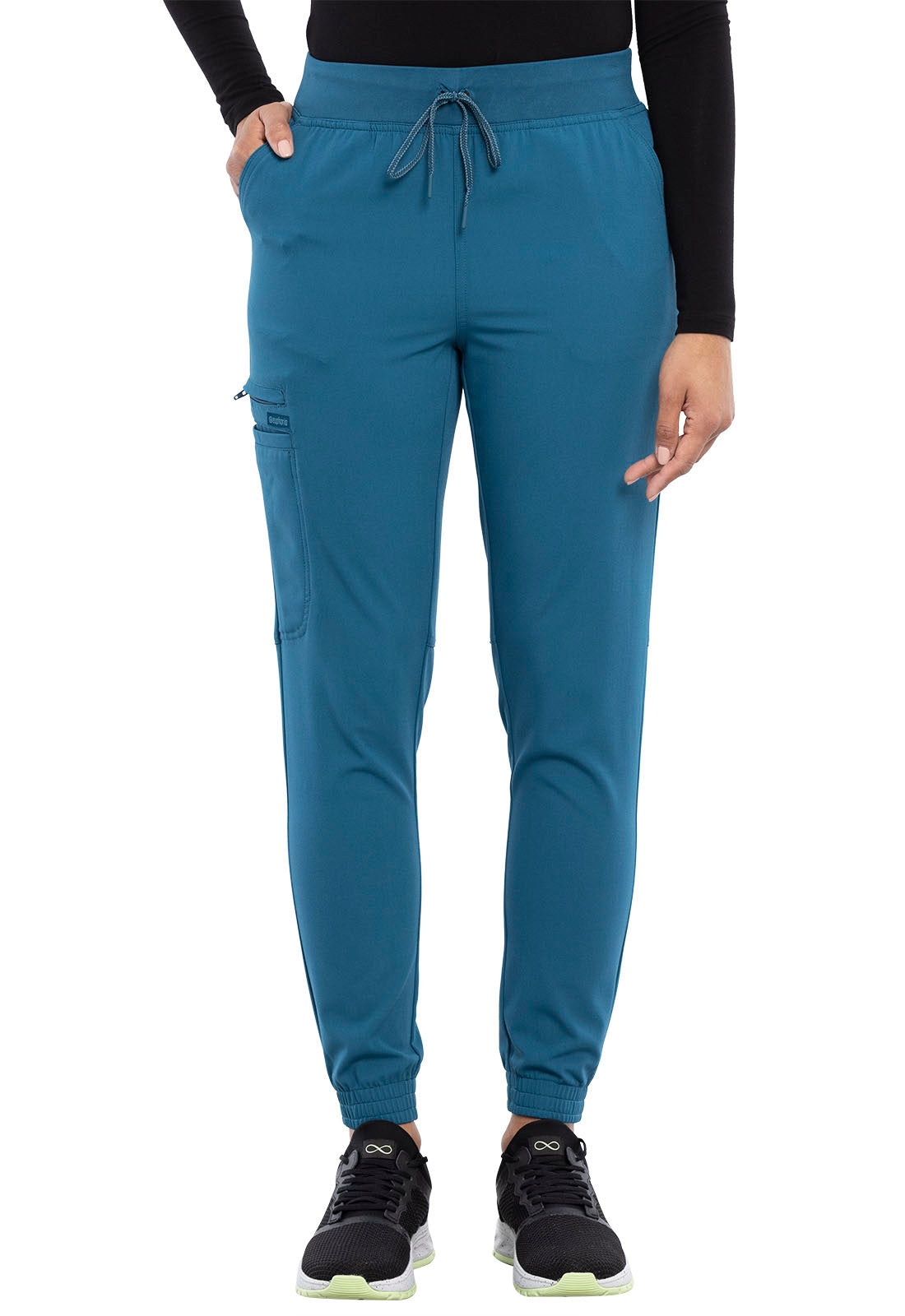 This Contemporary fit mid rise drawstring jogger has a tonal knit waistband reinforced with interior elastic. Other features include back seaming details and elastic cuffs. There are six pockets: two front pockets, one half welt cargo pocket on the wearer's right, one zip security pocket above the cargo pocket and two back patch pockets. Inseam: 31 1/2"