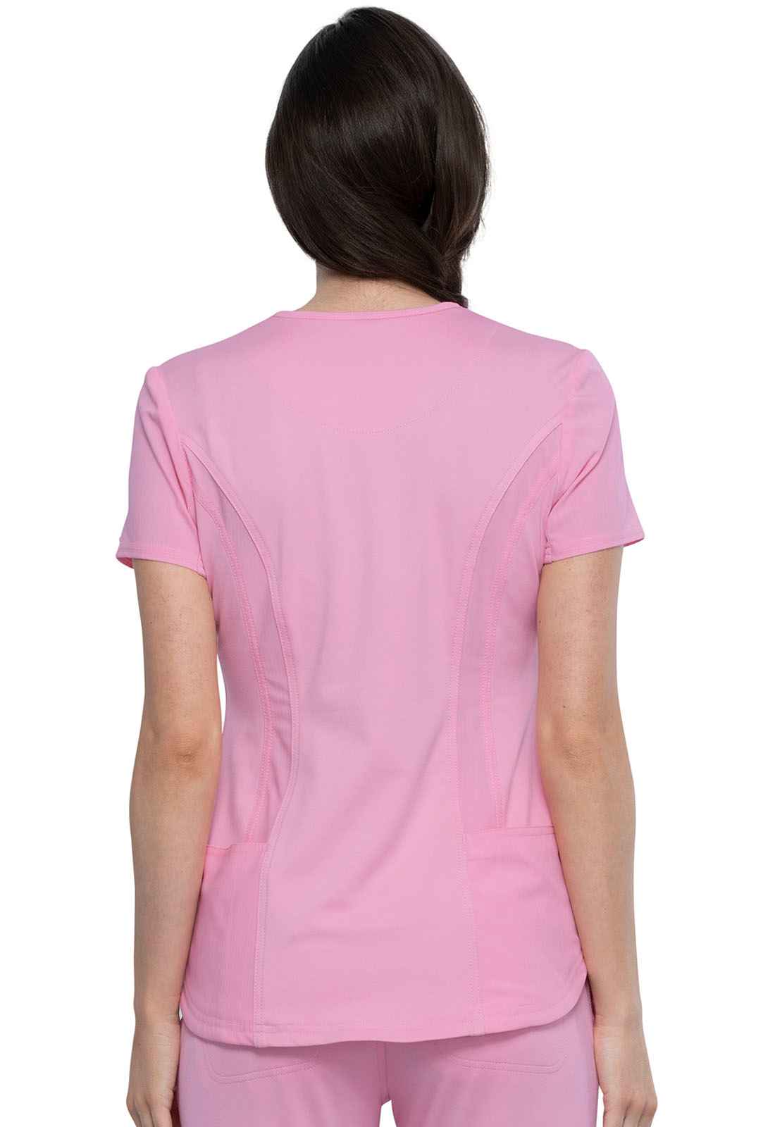 This Contemporary fit stylized V-neck top has a bungee ID badge loop on the right shoulder yoke seam, a notched back neckline and a curved back yoke seam. Other features include front and back princess seams and a rounded hem....
