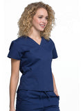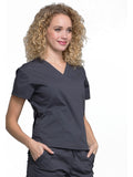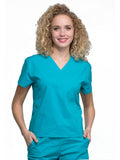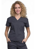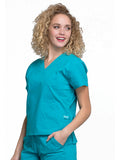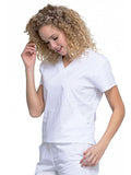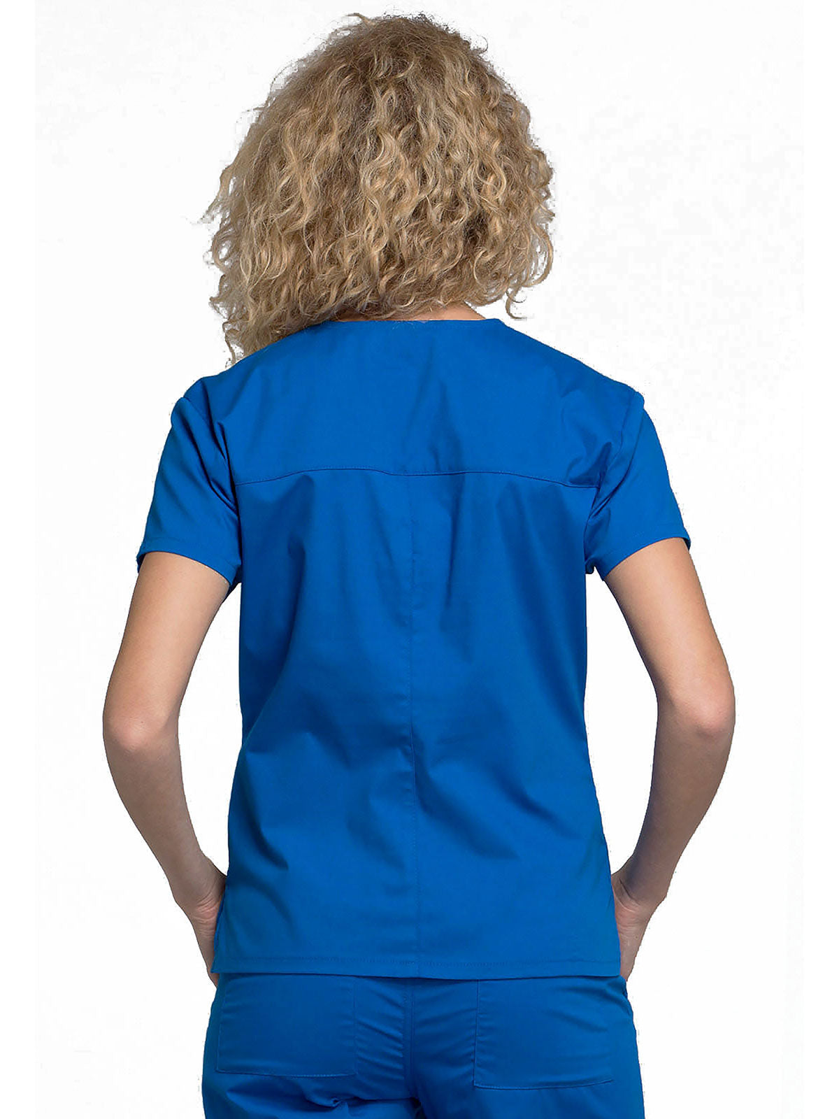 A Men's Traditional fit V-neck top features a chest pocket, two patch pockets, a cell phone pocket, hidden instrument loop, back yoke and side vents. Center back length: 32"_x000D_ Men's Traditional Fit 4 Pockets: Patch Pockets, Chest Pocket, Interior Pocket...