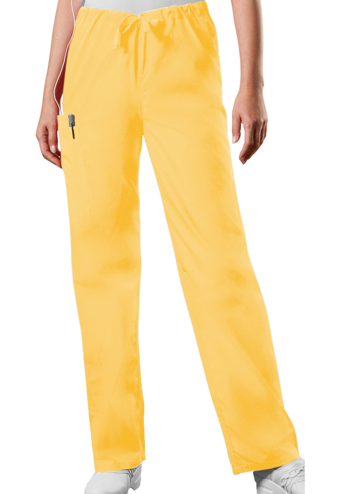 A casual Unisex Traditional fit pant features a natural rise and an adjustable webbed drawstring at the waist, one back pocket, and a cargo pocket with an inside cell phone pocket