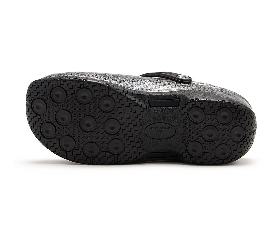 A fun style for men and women, the Unisex Zone features Anywear's signature lightweight and comfortable fit. Slip resistant rubber outsole. Removable EVA insole with ventilation holes. High Rebound Injected Molded EVA upper and midsole for exceptional cushioning and shock absorption. Anywear logos on top head of snap and printed on the insole lining. FEATURES Certainty® antimicrobial insole lining to reduce odor-causing bacteria. Swiveled back strap. Soft, rounded, and roomy toe box for a comfortable fit. Size chart to easily convert women's sizes to men's. Easy to clean with soap and warm water. Heel height: 1 1/2"_x000D_