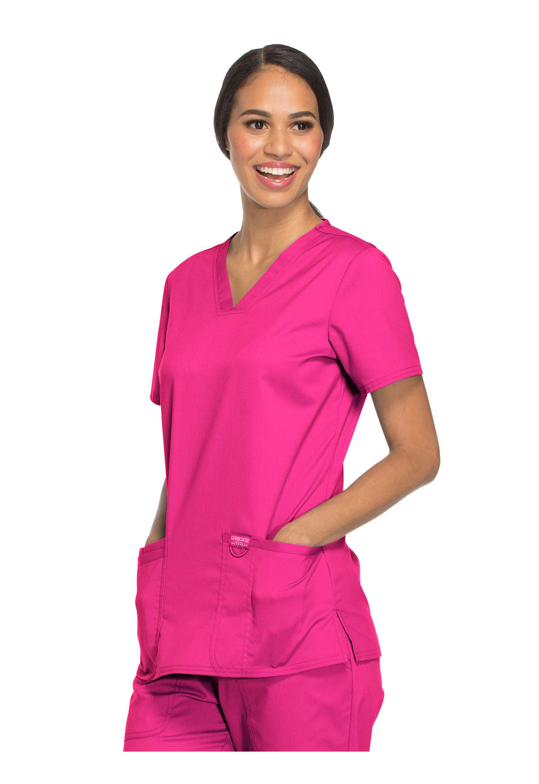 Cherokee Revolution Scrubs have now come up with a solution for the placement of your essential equipment. Our Scrubs are now available with 3 separate pockets, a patch pocket, a pen slot, and a double pocket that can easily accommodate your essential equipment, tools, pens, and personal objects. Hence, you are easily able to focus on your work without being engaged in carrying your stuff.