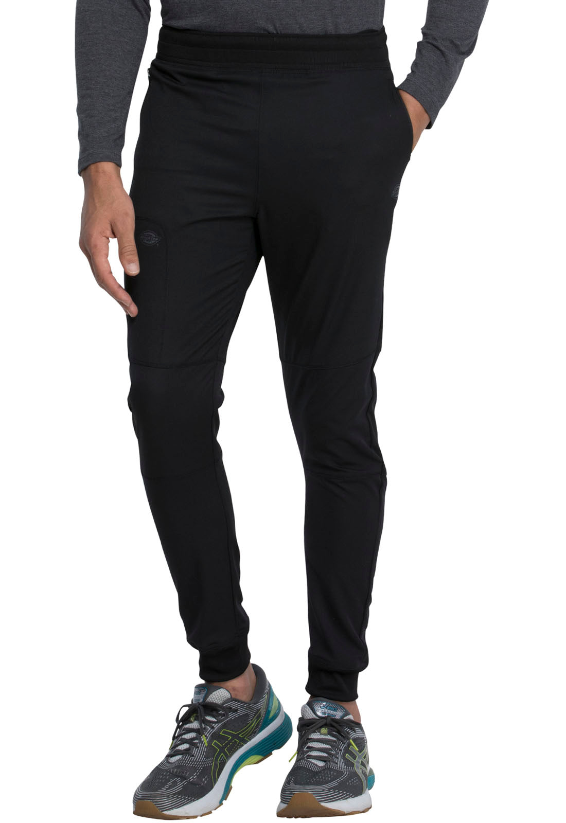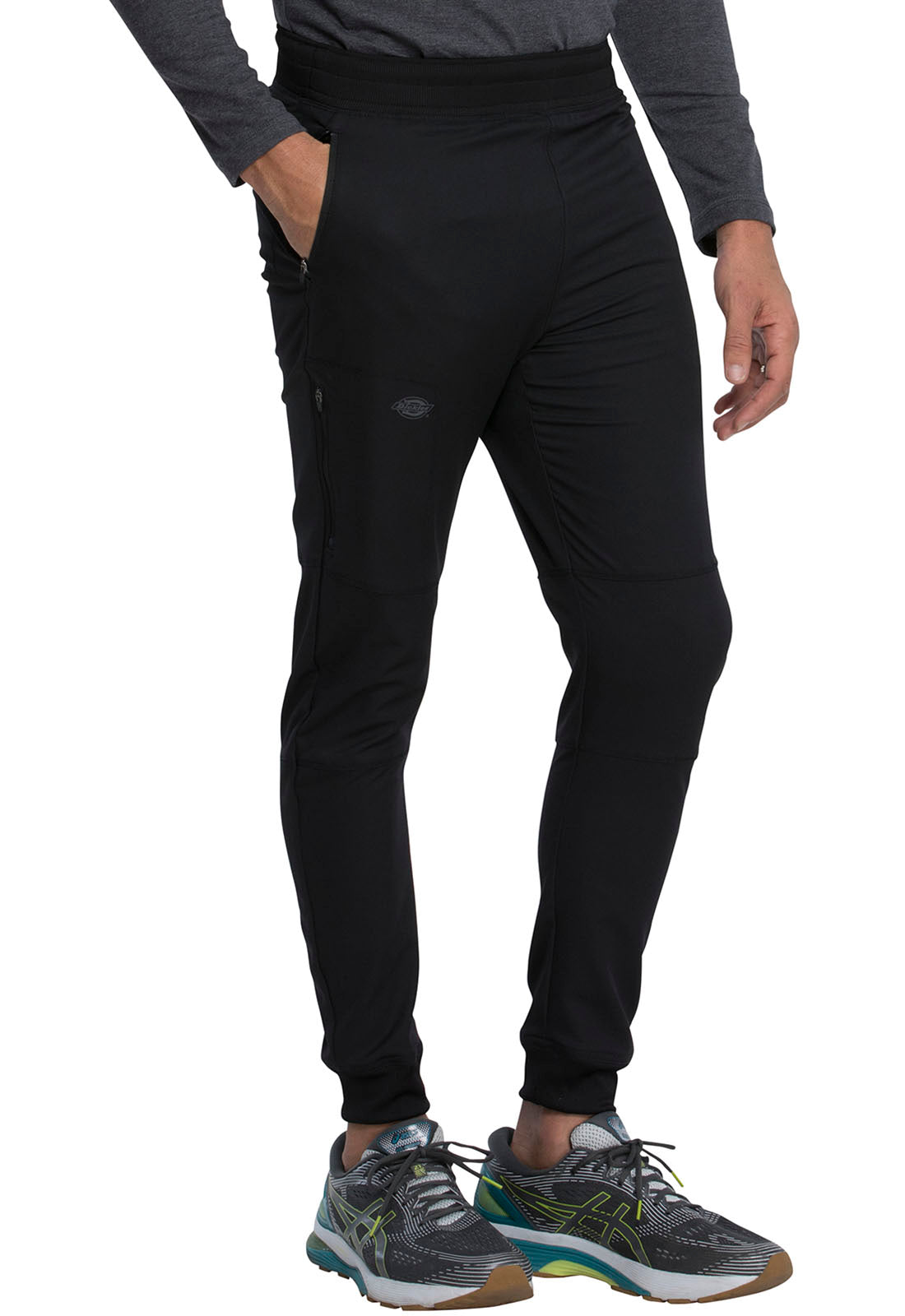 The Dynamix by Dickies Men's Natural Rise Jogger Scrub Pant features rib-knit elastic waistband, self-drawstring, rib-knit cuffs, reinforced leg seams, and zippered pockets for peace of mind.