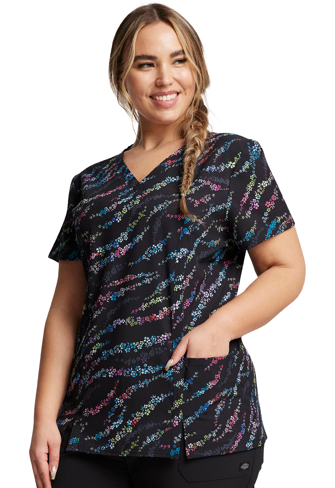 Men's Fit V-neck top features Dickies logo twill tape at the back neck, a double chest pocket with self-strapping, and a D-ring. Also featured are patch pockets, a stretchy Galaxy Blue knit interior pocket (White knit pocket on White), a...