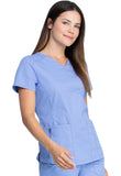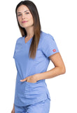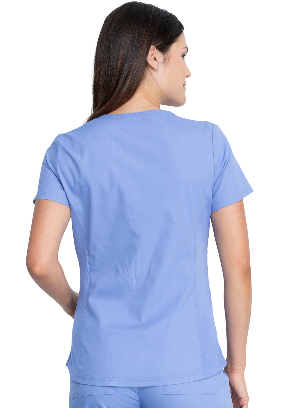 Men's Fit V-neck top features Dickies logo twill tape at the back neck, a double chest pocket with self-strapping, and a D-ring. Also featured are patch pockets, a stretchy Galaxy Blue knit interior pocket (White knit pocket on White), a...