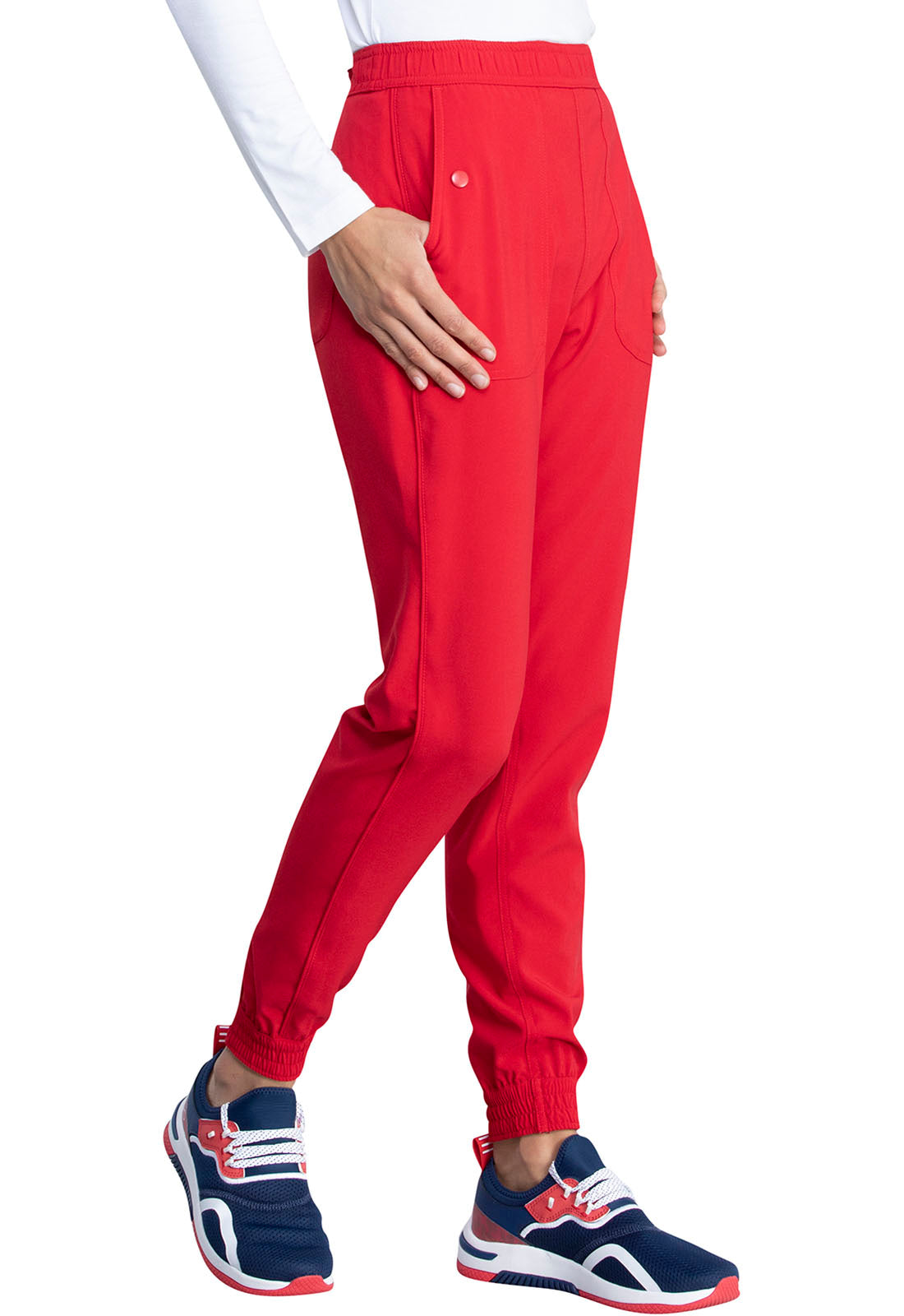 This Contemporary fit, mid rise jogger pant has two snap closure at side angled front pockets along with a secured back zip pocket. It also has an interior drawstring at waistband with an elasticized bottom cuffs with checker print inner...