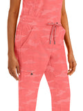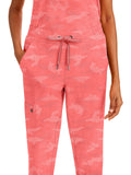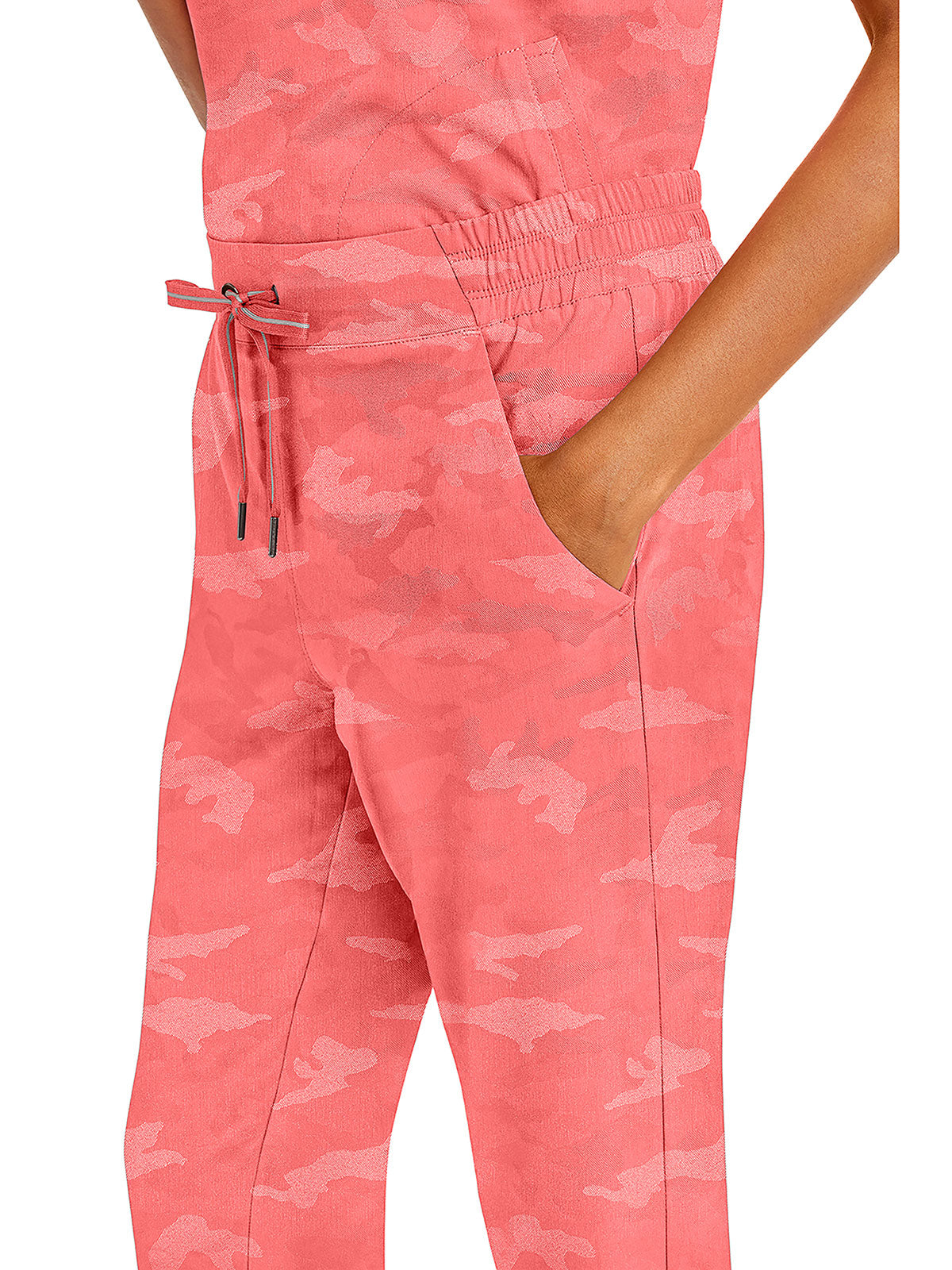 Soft woven scrub fabric on the front plus a stretchy full knit back equals one very fashionable scrub jogger. This pant also has a unique detail: a detachable pocket for on-the-go storage. The Healing Hands x Dr. Kwane Vanessa mid...