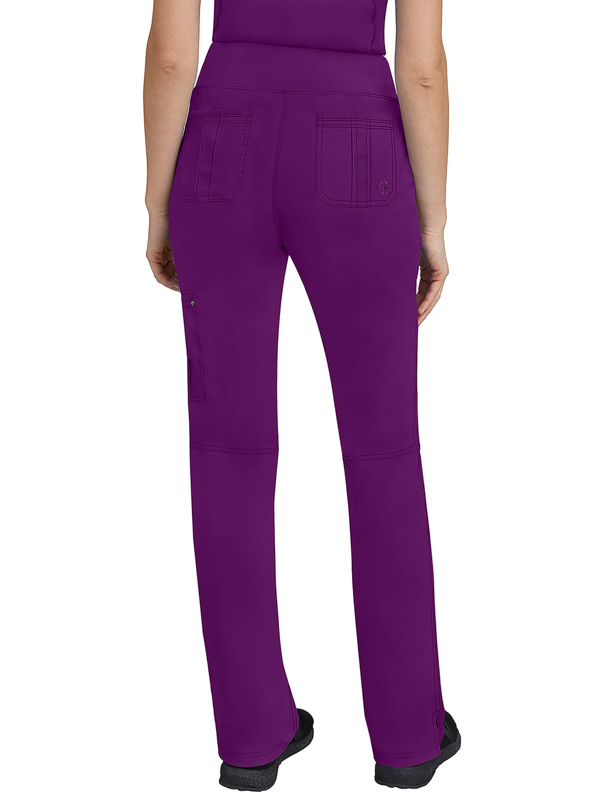 Soft woven scrub fabric on the front plus stretchy knit panels on the back equals one very wearable scrub pant. The Healing Hands x Dr. Kwane Veronica mid rise pant features a mock fly, flat front waistband with a drawstring...
