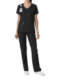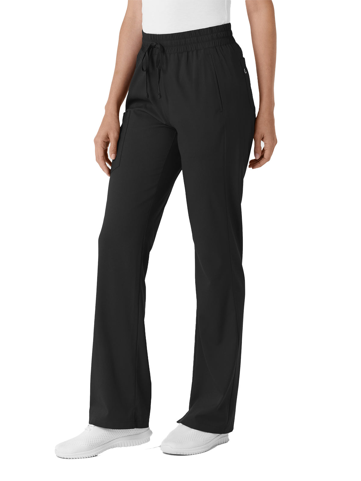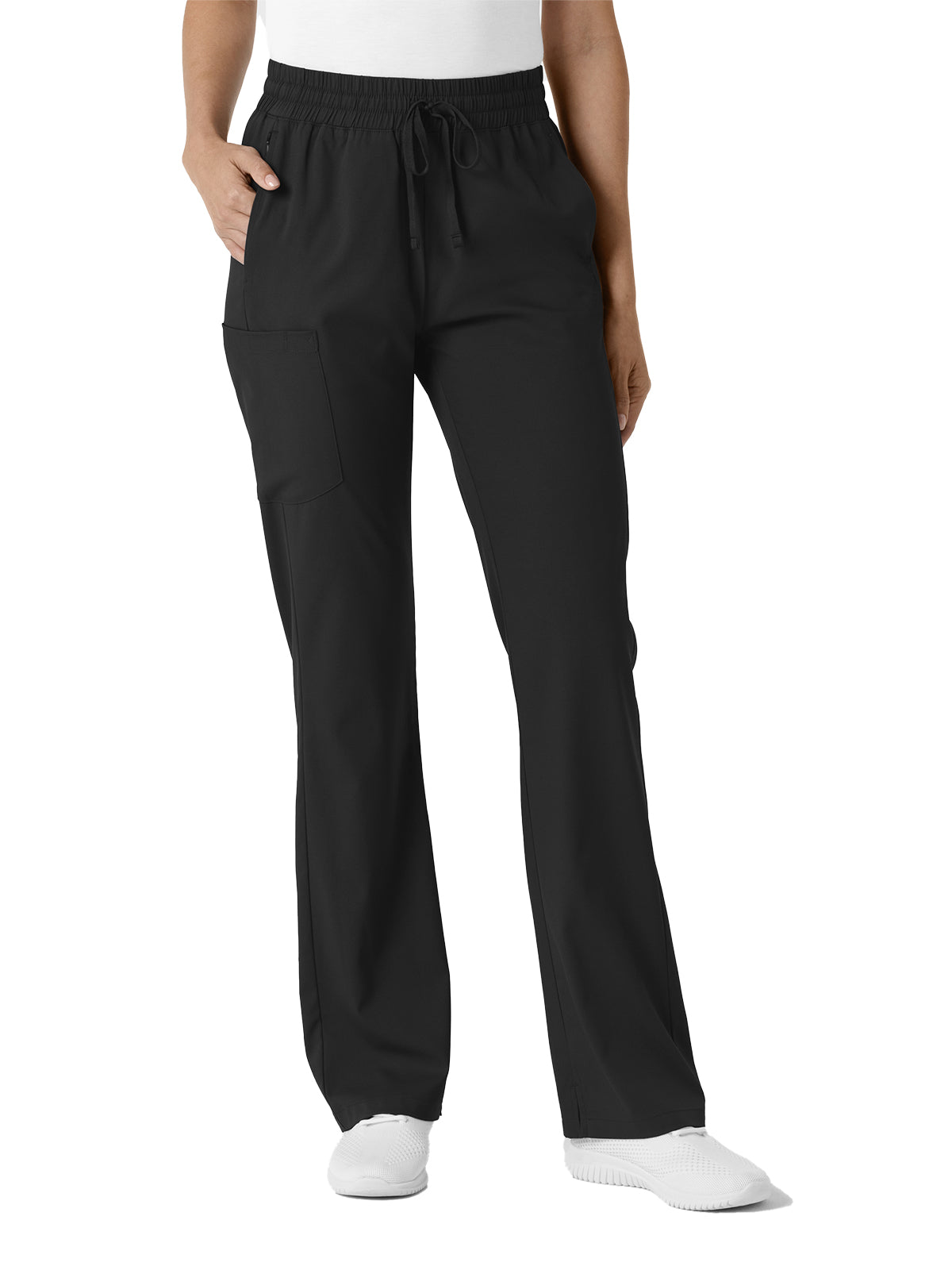 You're the type to bring a sense of fashion to your look at work, and these women's bootcut scrub pants do just that — with all the utility you need. Designed with a gentle flare just below the knees, they deliver the modern, on-trend silhouette you love to wear on days off spent relaxing and having fun. Two pockets on the sides take care of small essentials, and one security pocket keeps valuables close for peace of mind throughout the day. Two pockets at the back offer additional room for tools and essentials, and one cargo pocket includes a bartack stitch to keep your pen in place. For a customized fit with every wear, simply adjust the drawstring on the wide elastic waist, which never digs in and stays comfortable whether you're taking patient calls or moving from room to room. These scrub pants are constructed from a soft, stretchy, sustainably made material, blending the best of comfort and planet-friendly style.