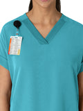 The Wink NOVA collection, it's made with recycled materials, so it treads a little more lightly on the environment than conventional scrubs. In addition to being an Earth-friendly choice, the top is casual and easy to move in, so it checks all the boxes to get you through your shift in comfort. Its modern fit skims the body for a fit that's not too tight and not too loose. The soft, stretchy fabric lets you turn patients, run codes, and adjust wheelchairs. Plus, it's lightweight and breathable, so you stay cool even on tough shifts when the pressure's intense. Drop shoulders give it a relaxed feel, and side vents add extra flexibility. Attach your badge to a loop at the shoulder, and stash your phone, tablet, and supplies in the side pockets.
