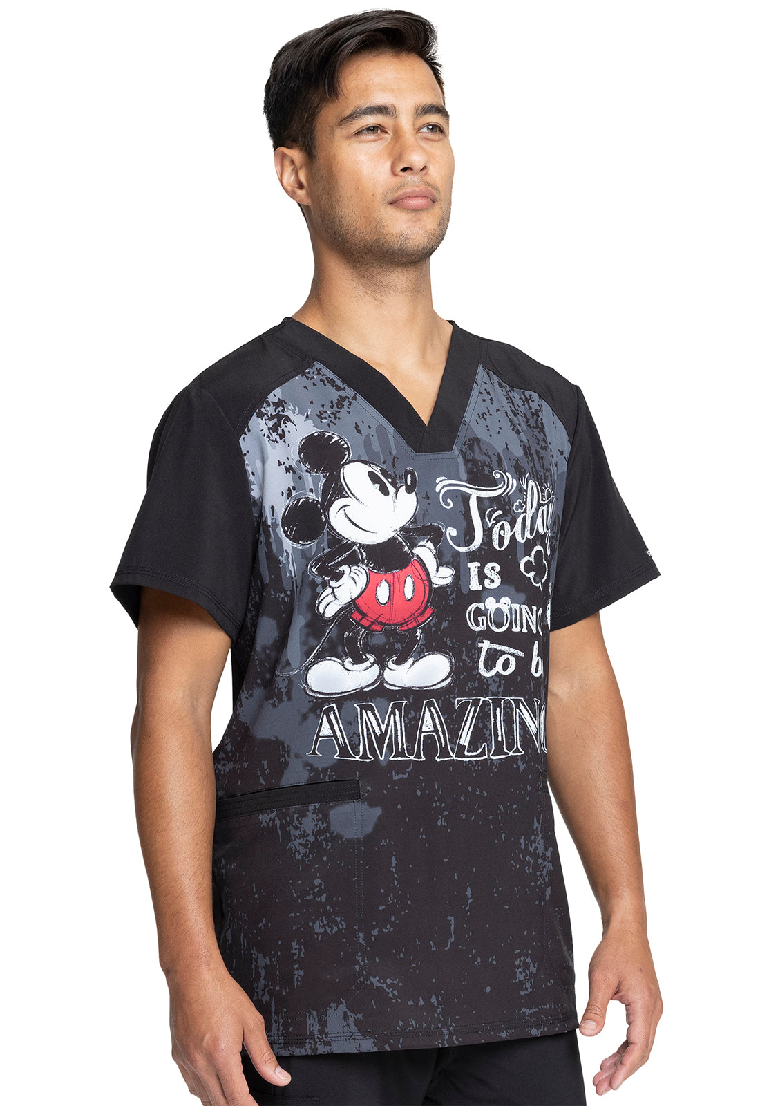 A Men's Modern fit V-neck top features a chest pocket with zip closure for security, instrument loop on the left sleeve, front and back yokes with triple-needle topstitching, and stretch rib knit neckband and back panels for extra comfort. This...