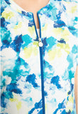 This Contemporary fit rounded v-neck full zip top has a rib-knit inset at the neckline plus front and back yoke seams with decorative seams at the back yoke. There are front and back princess seams, two angled welt pockets, side vents plus a shirttail hem. Center back length: 26"