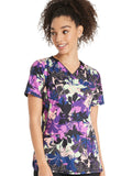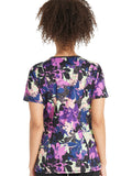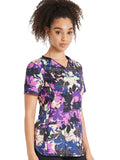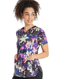 This chic v-neck print top features a rib-knit insert at the front neck, a logo metal O-ring at the wearer's right shoulder, and princess seams at front and back for a flattering slim shape. There are also front welt pockets (left with pen slot). Contemporary fit. Center back length: 26"