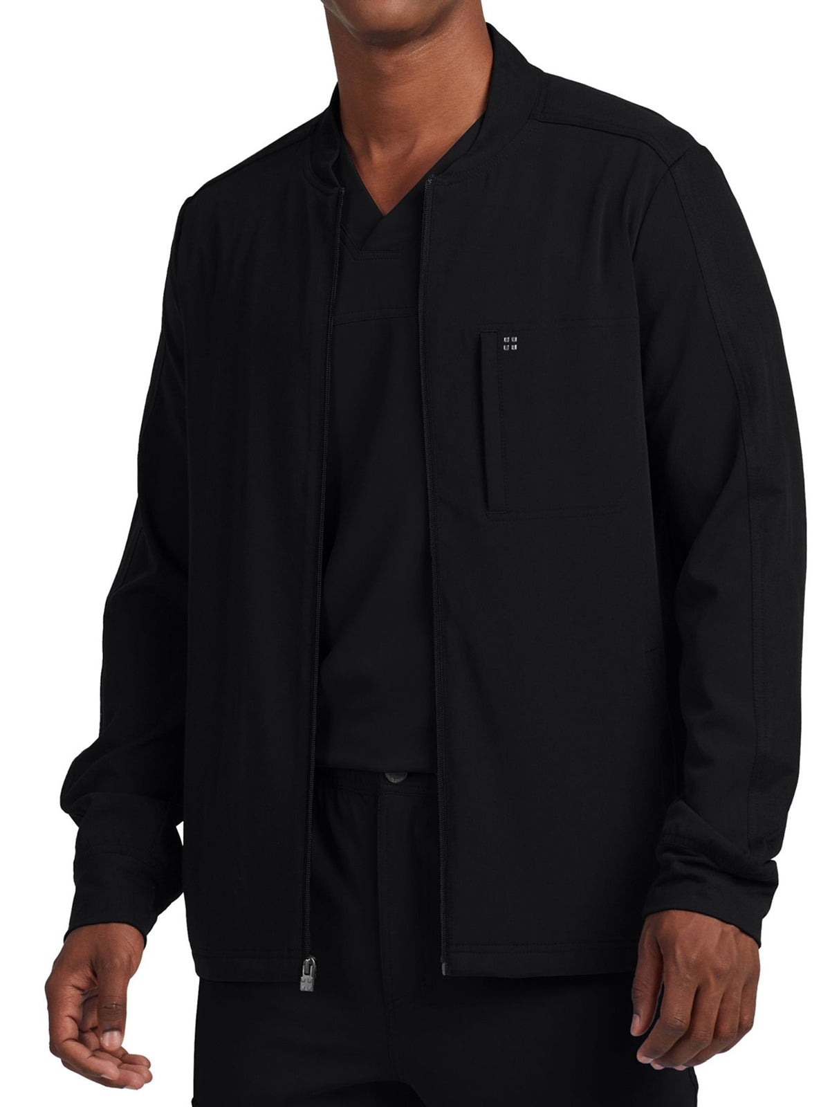 Layer your uniform for an effortless coordinated look with the PRO by WonderWink Men's Snap Front Jacket. Five pockets keep your essentials close at hand, while ribbed details add a hint of style. Center back length: 30" Soft rib-knit collar...