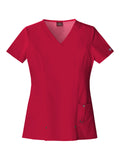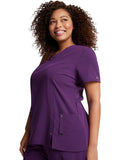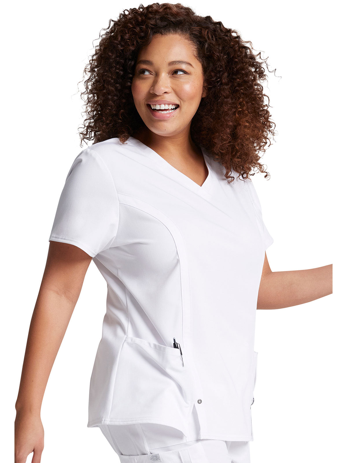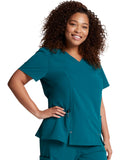 A Contemporary fit mock wrap top features decorative logo eyelet trim, front shoulder yokes, three patch pockets and a utility D-ring. Also featured are front and back princess seams for added shape plus side vents. Center back length: 26 1/2".