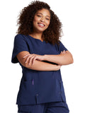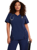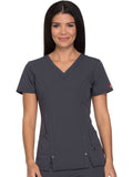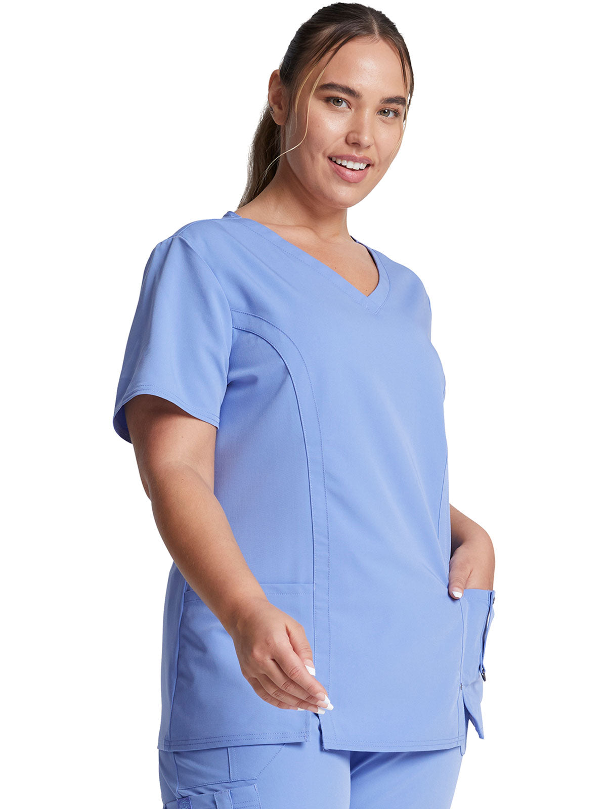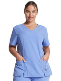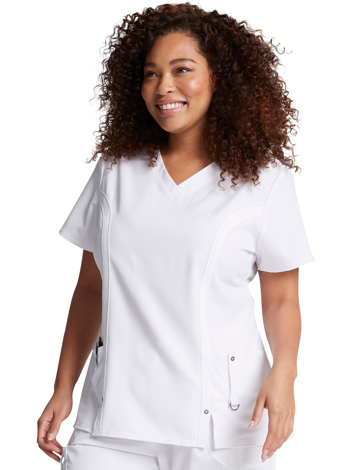 A Contemporary fit V-neck top features multi-needle contrast topstitching (White takes tonal topstitching), a front yoke for a sporty look, a chest pocket with a reinforced pen slot, a cell phone pocket, multi-sectional utility slots, two roomy patch pockets with...