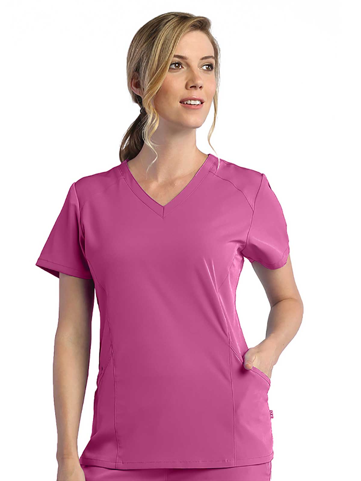 PureSoft - Women's 3-Panels Curved V-Neck Top